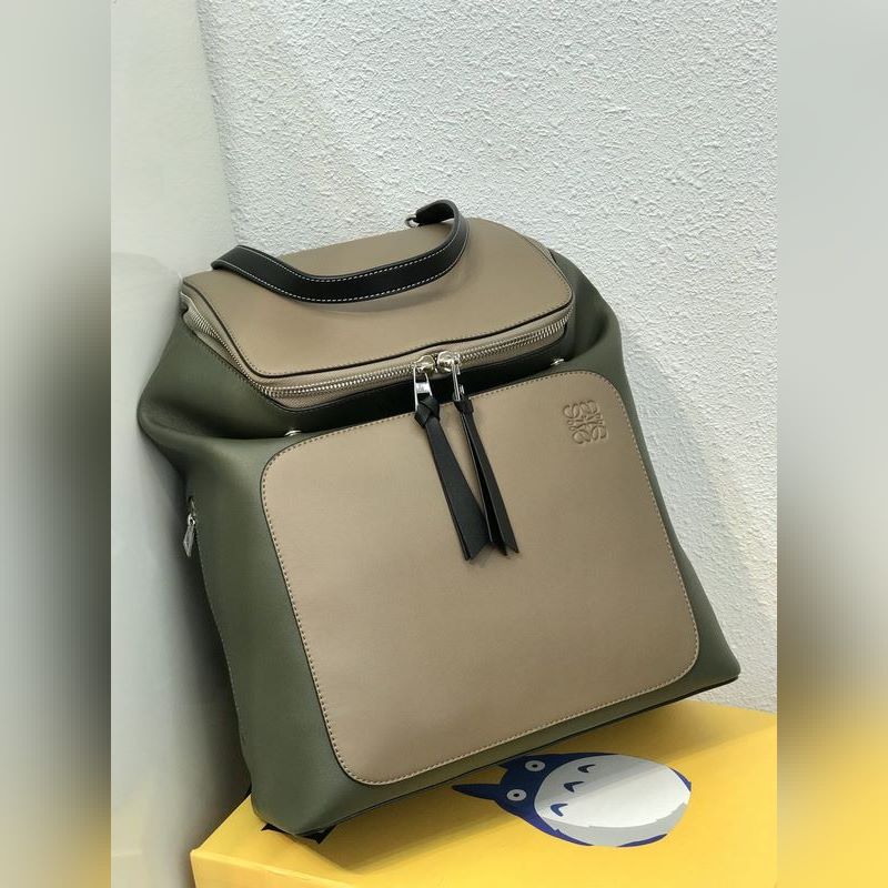 로에베 배낭 그린과 살구색 모델 10268 착용했을 때 특히 스타일리시