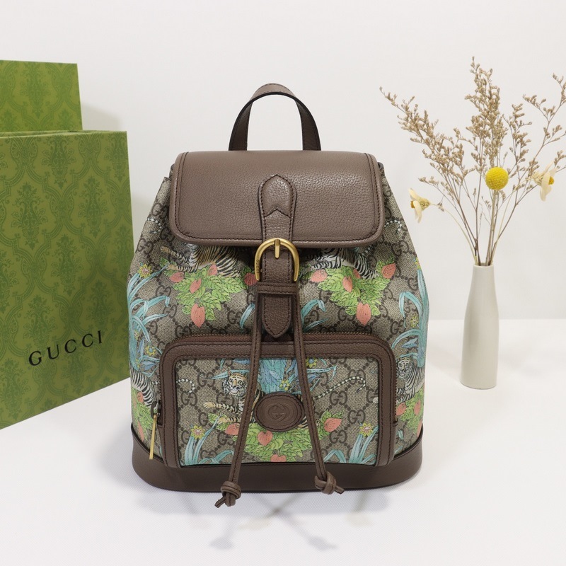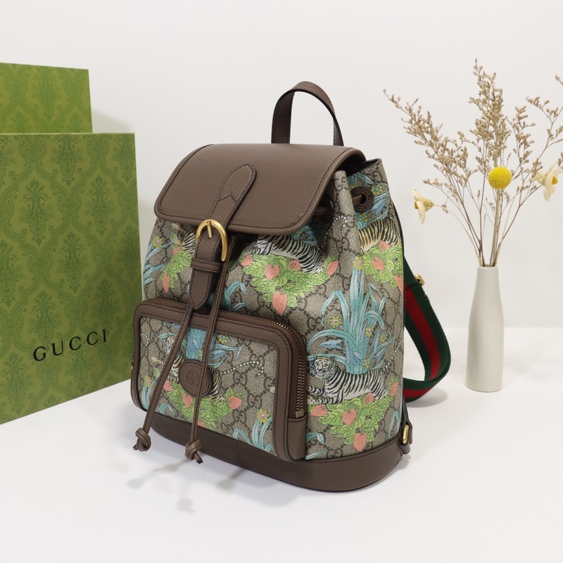 GUCCI 패션 백팩 모델 번호: 674147 베이지 타이거 스크린 프린트 크기: W26.5 x H30 x D13cm.
