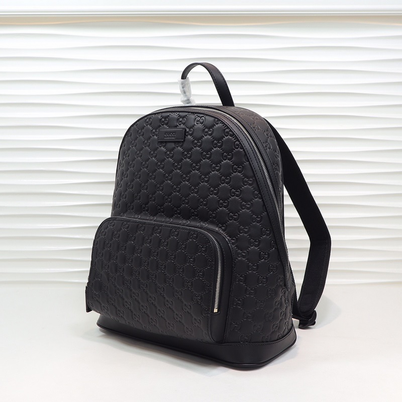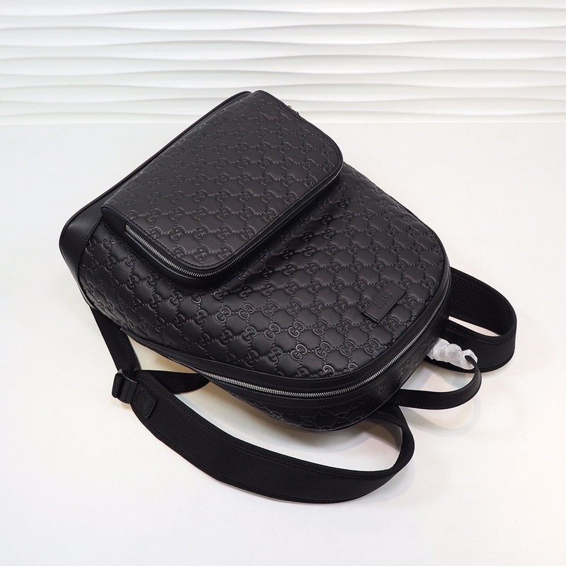 GUCCI 남성용 필수 패션 백팩 모델 번호: 406370 블랙 엠보싱 크기: W31.5cm x H41cm x D14.5cm
