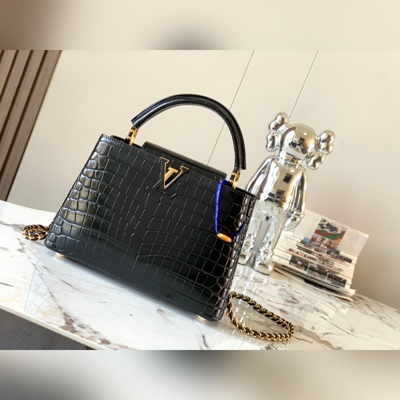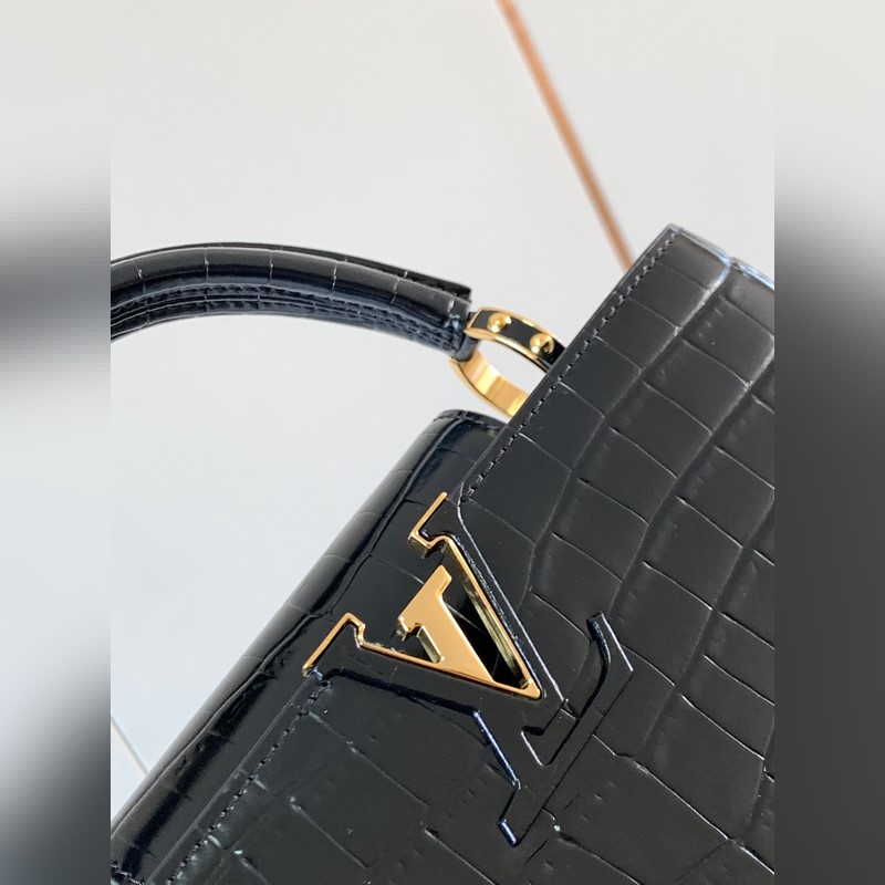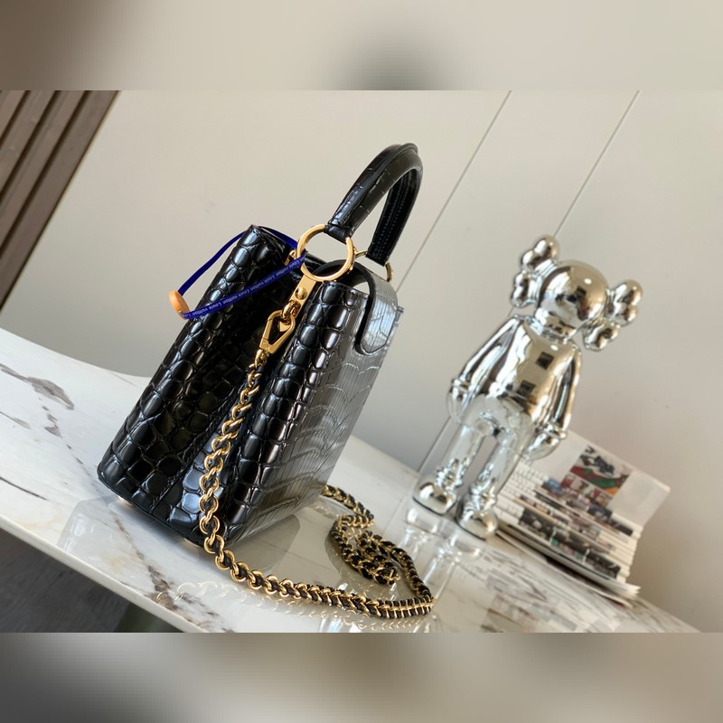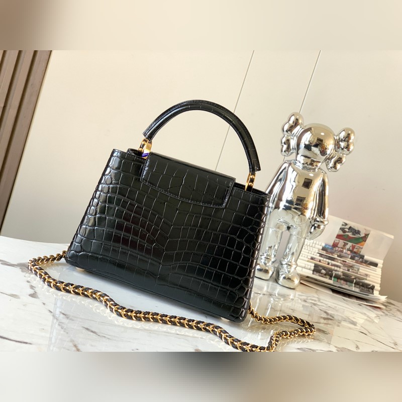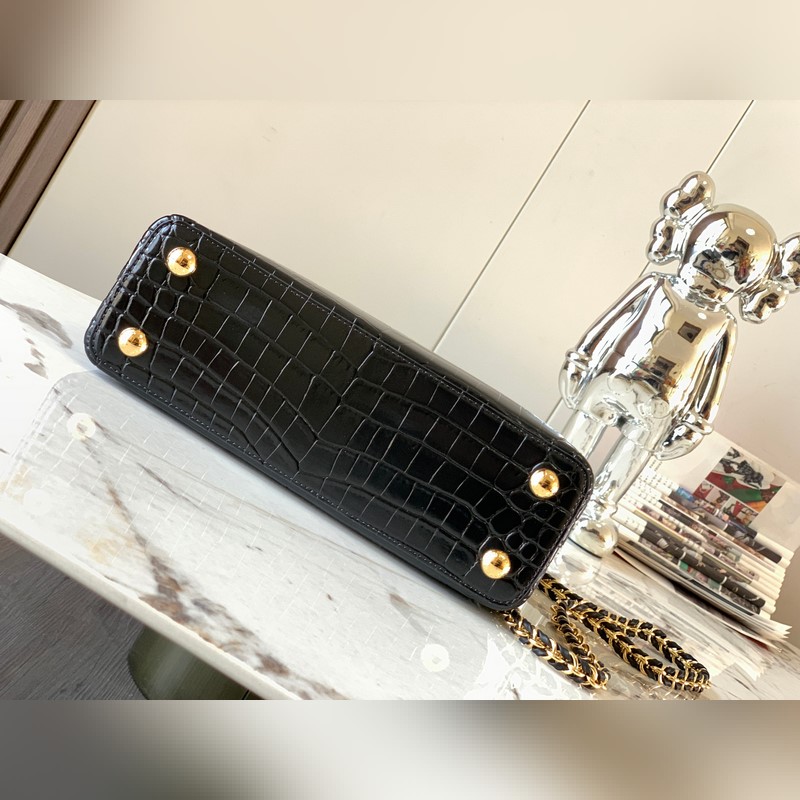 [특별히 엄선된 천연 가죽 N81215 블랙 샤이니 크로커다일 패턴에 금