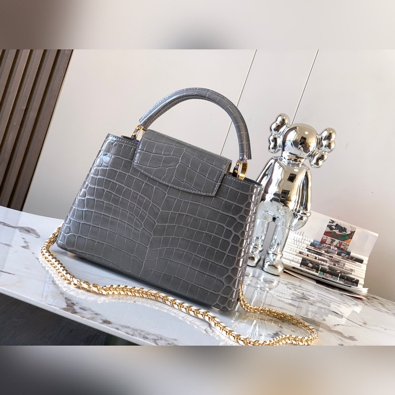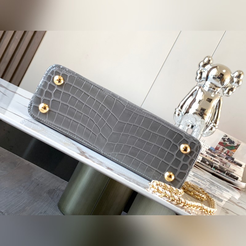 [특별히 엄선된 천연 가죽 N81215 다크 그레이 반짝이는 악어 무늬