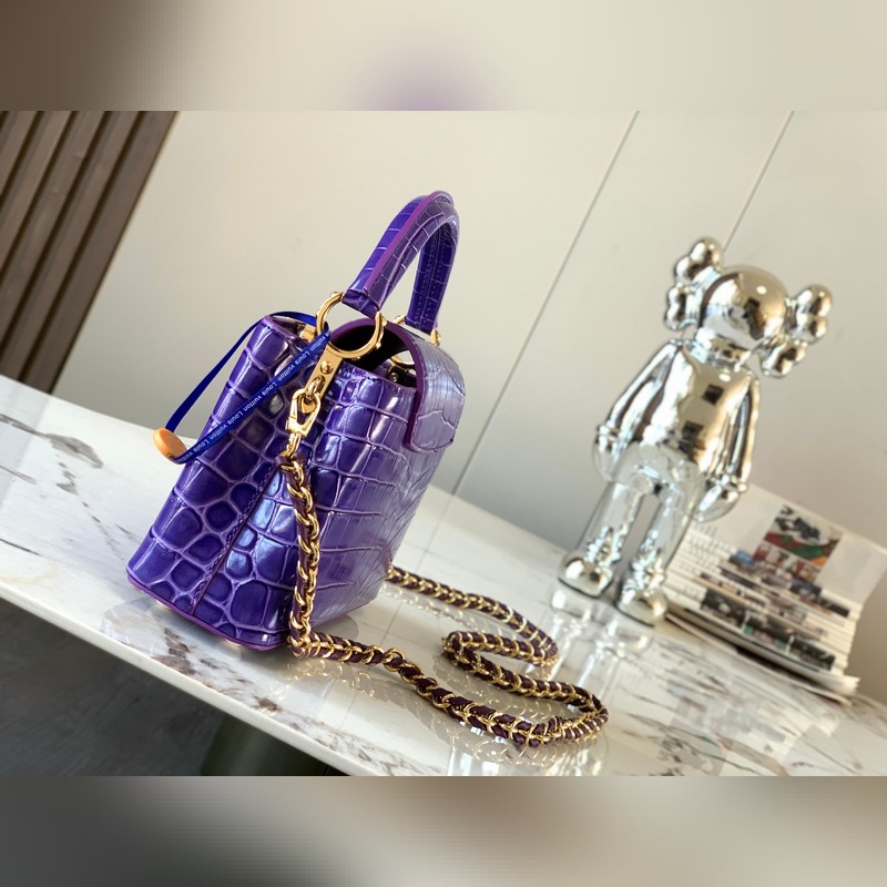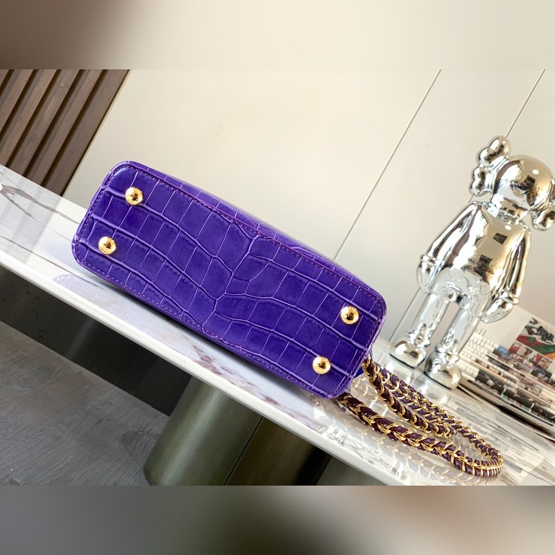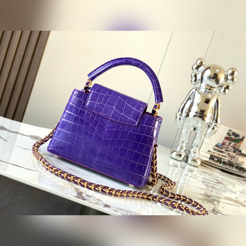 [특별히 엄선된 천연 가죽 N81190 자수정 빛깔의 악어 무늬 직조 금