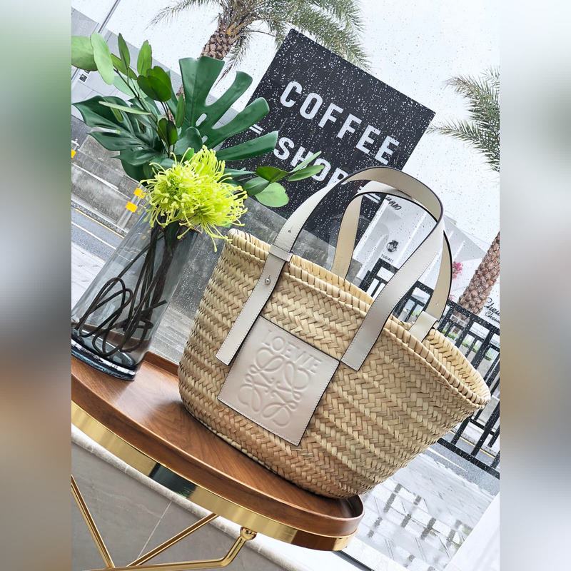 (10129) 흰색 로에. 직조 바구니 정통 말레이시아 야자 잎 패션