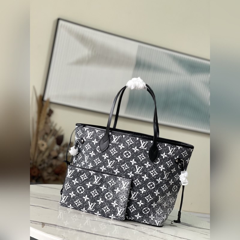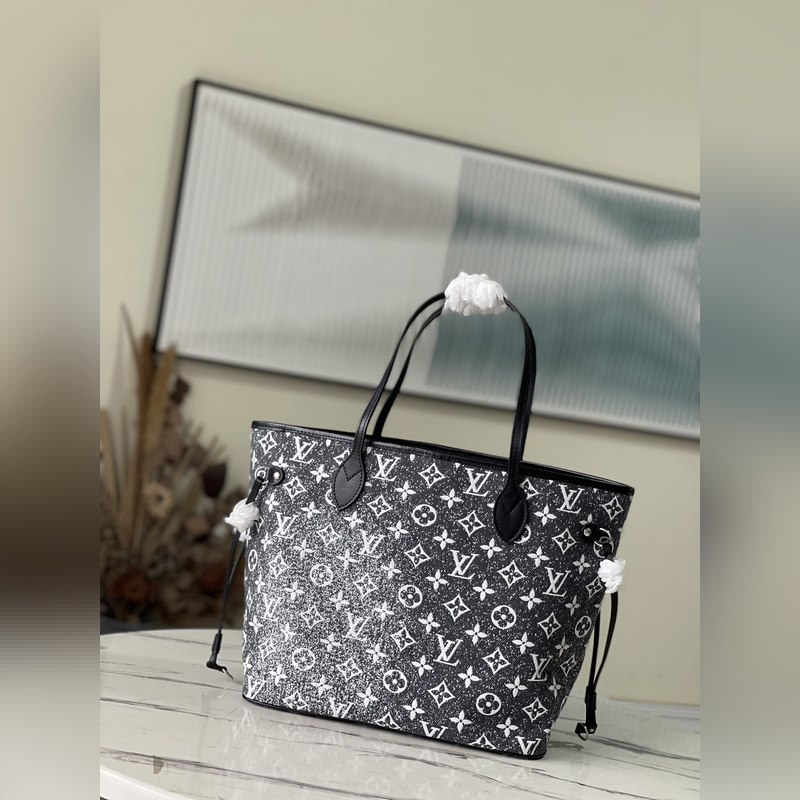 스타일 번호: M21465 이 네버풀 미디엄 사이즈 핸드백은 자카드 데님