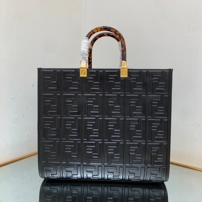 중간 검은색 양가죽 프레스 F 토트백 선샤인 토트백 큰 로고 디자인