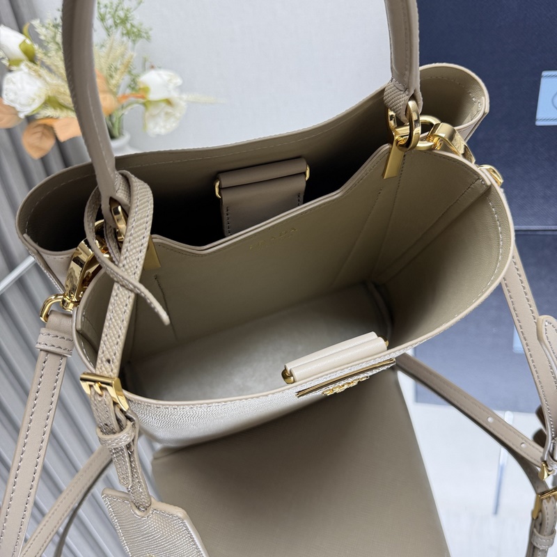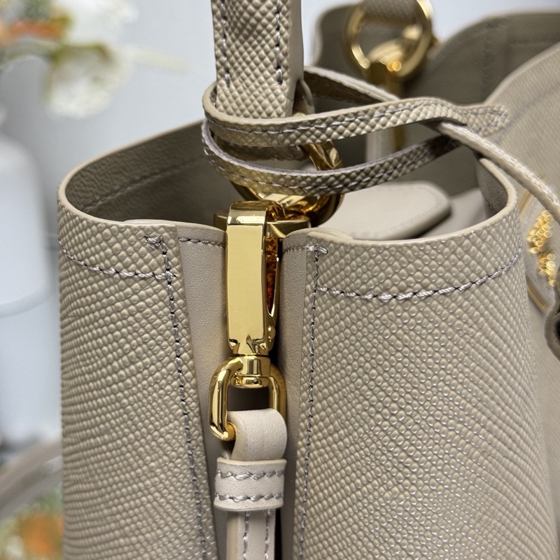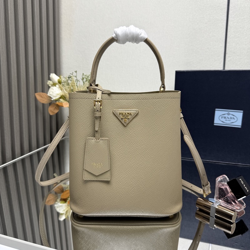 [프리미엄 오리지널] 최신 인기 상품 1BA212 버킷백(신형 태그 버전) 사피아노 가죽 소재 가죽 핸들 분리 및 길이 조절 가능한 가죽 숄더 스트랩 메탈 로고가 있는 분리형 가죽 네임 태그 가죽으로 감싼 마그네틱 클로저 중앙 개폐부 사피아노 가죽 삼각형 로고 컬러 대비 소프트 양가죽 안감 사이즈: 22 x 23 x 13CM!