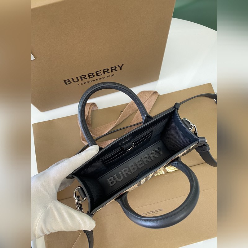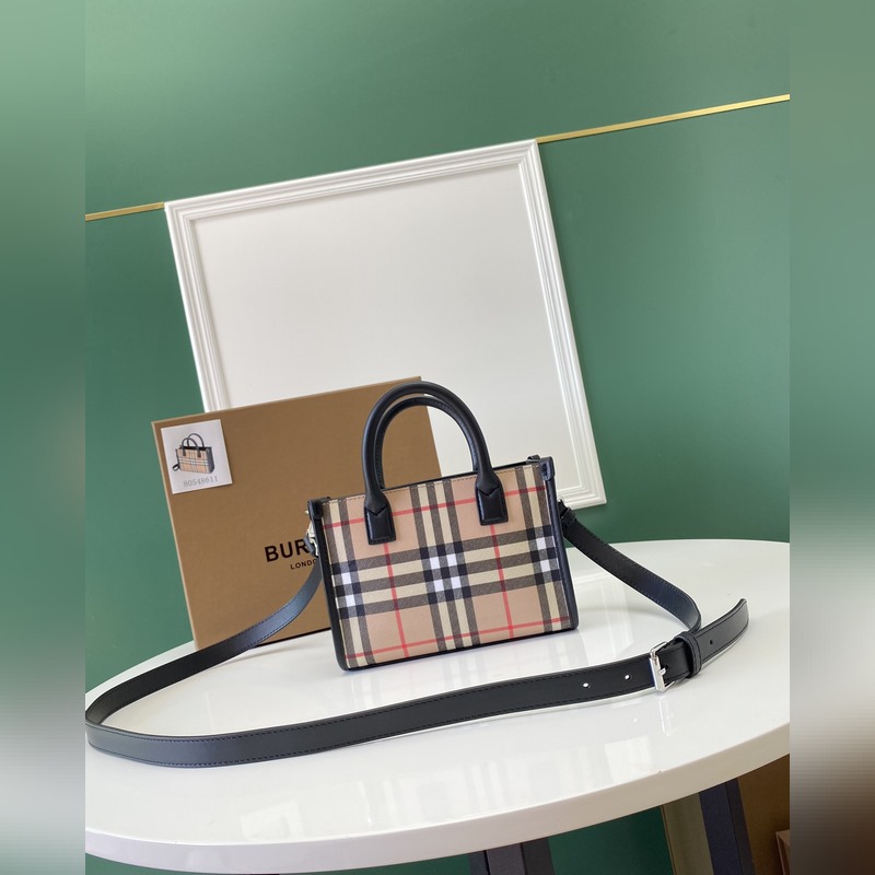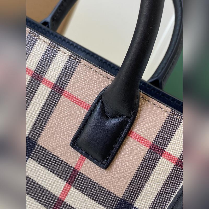 B의 새로운 토트백은 클래식한 타탄 패턴으로 장식되어 있습니다. 이 가방