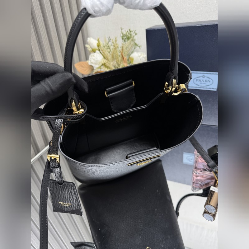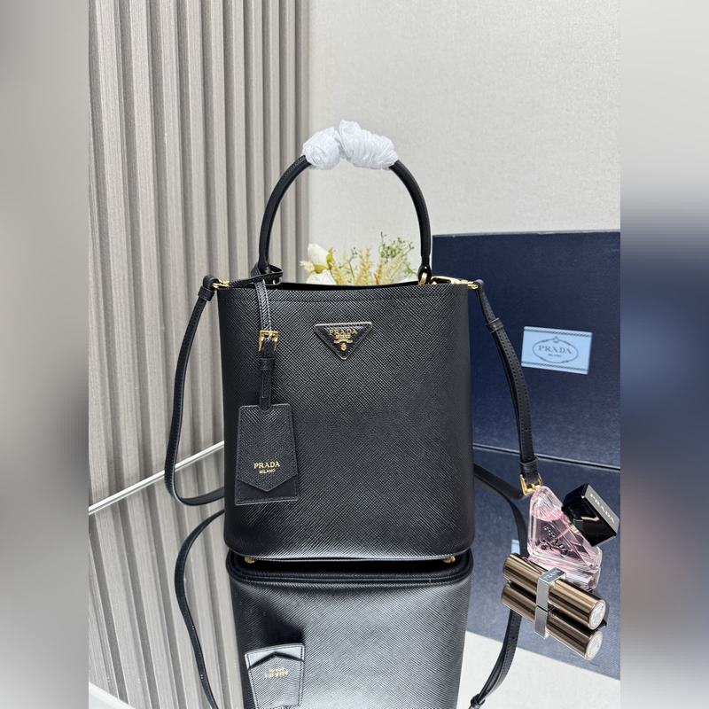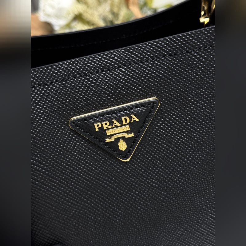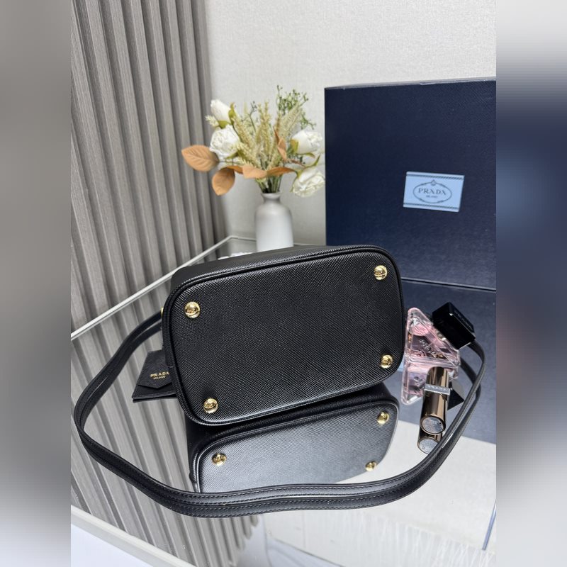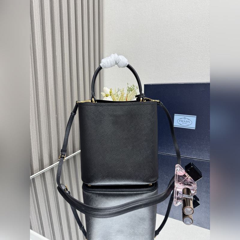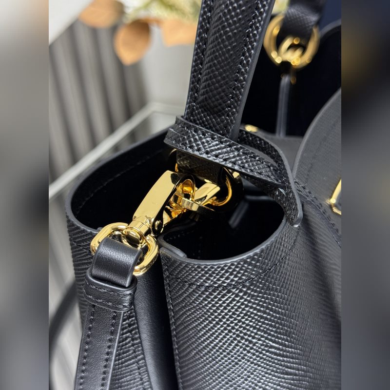 [프리미엄 오리지널] 최신 인기 상품 1BA212 버킷백(신형 태그 버전) 사피아노 가죽 소재 가죽 핸들 분리 및 길이 조절 가능한 가죽 숄더 스트랩 메탈 로고가 있는 분리형 가죽 네임 태그 가죽으로 감싼 마그네틱 클로저 중앙 개폐부 사피아노 가죽 삼각형 로고 컬러 대비 소프트 양가죽 안감 사이즈: 22 x 23 x 13CM!