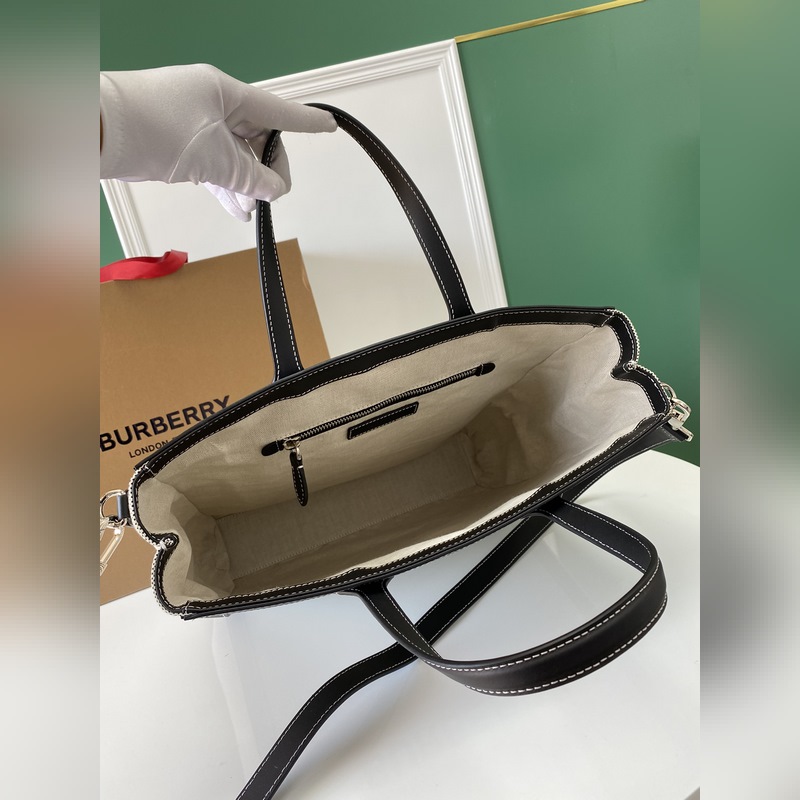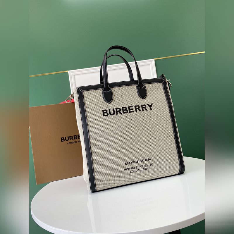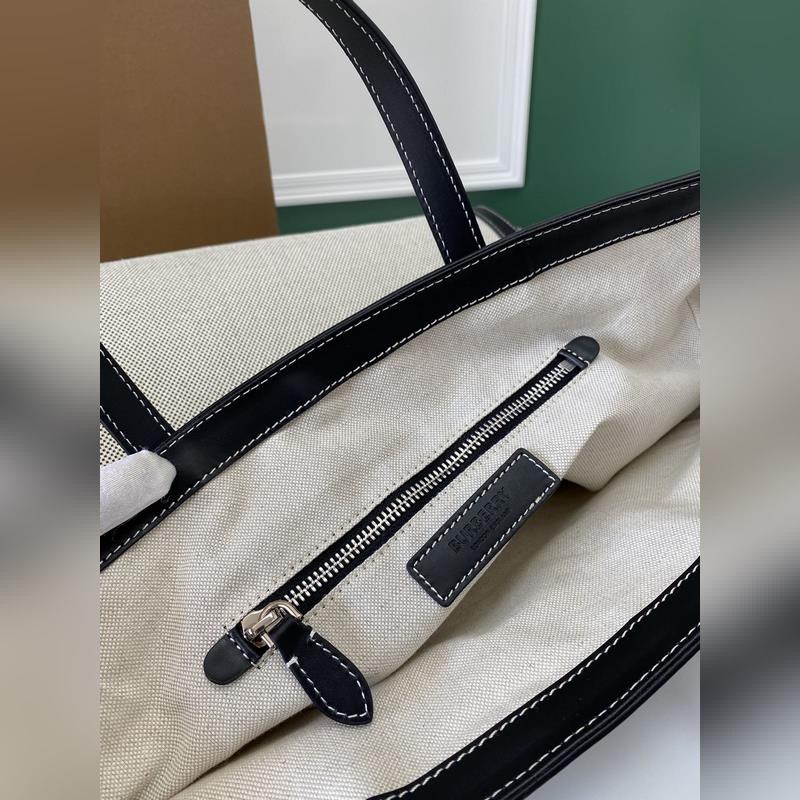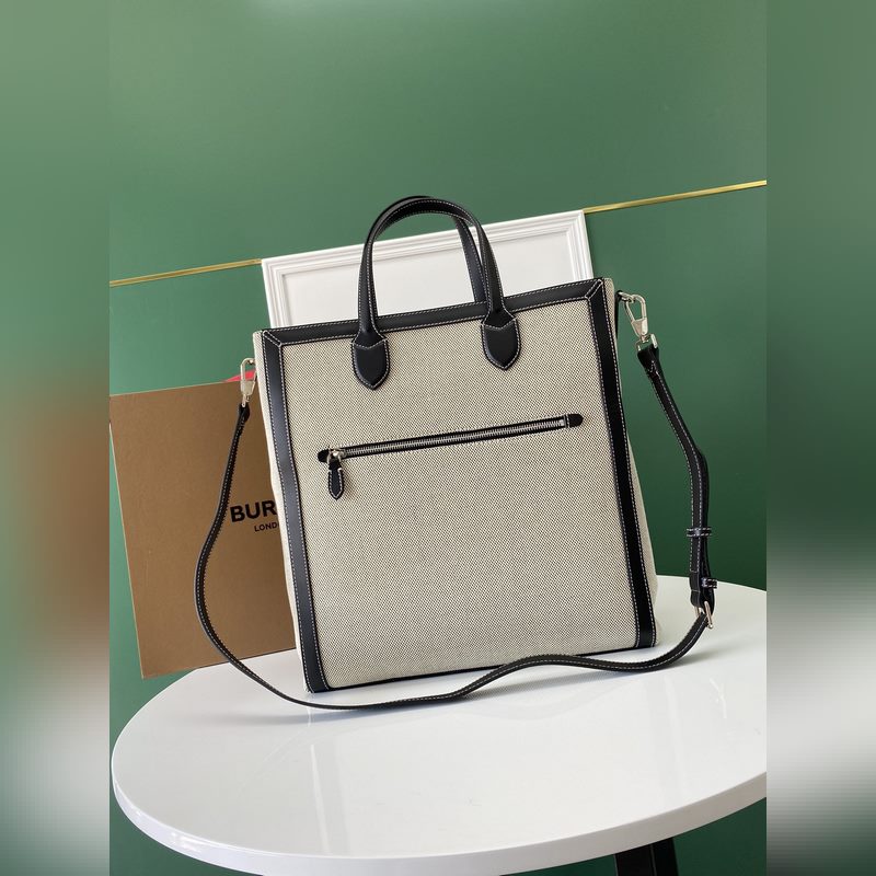 B 패밀리 오픈 토트백 엄선된 면 캔버스와 탑스티치 가죽으로 제작되었으