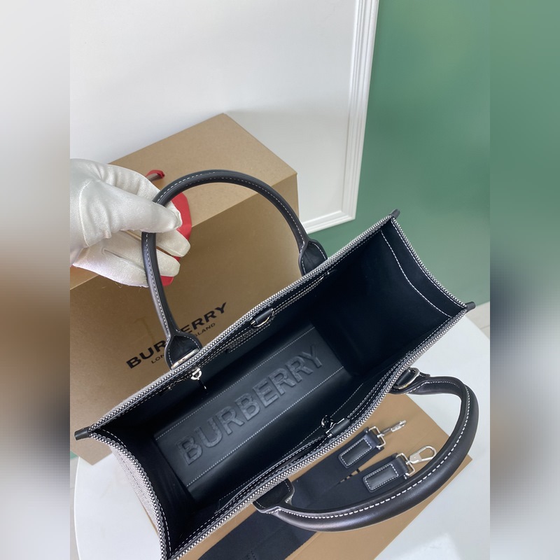 B 패밀리 오픈 토트백 엄선된 면 캔버스와 탑스티치 가죽으로 제작되었으