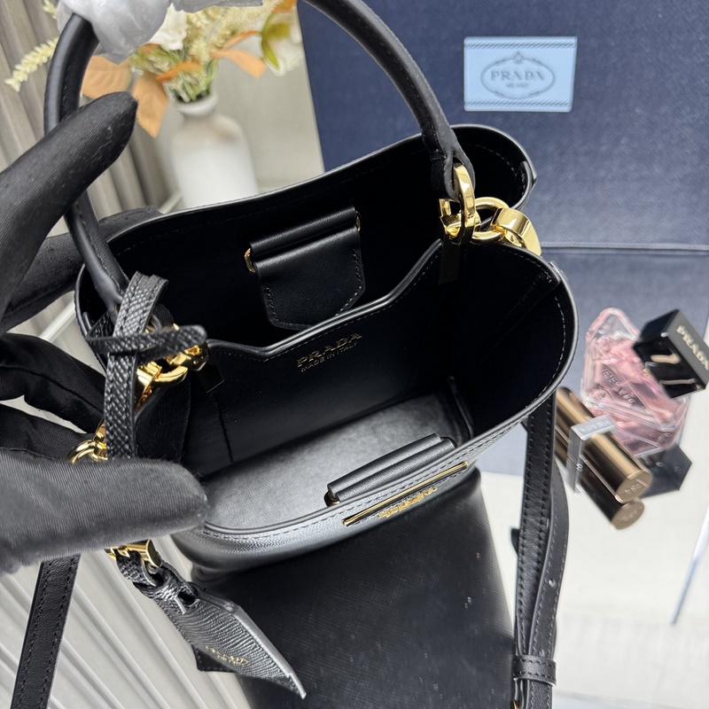 [프리미엄 오리지널] 매장 최신 인기 상품 1BA217 미니 버킷백 (신품 태그) 사피아노 가죽 소재 가죽 핸들 탈부착 및 길이 조절 가능한 가죽 숄더 스트랩 메탈 로고가 있는 탈부착 가죽 네임 태그 가죽으로 감싼 자석식 클로저 중앙 개구부 사피아노 가죽 삼각형 로고 대비 컬러 소프트 양가죽 안감 사이즈: 18 x 17 x 10.5cm!