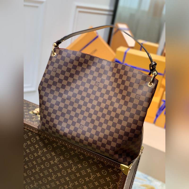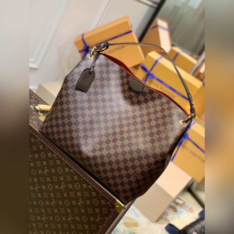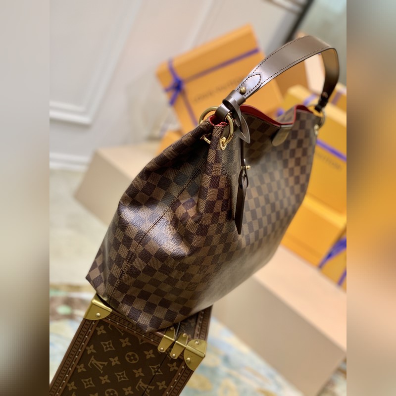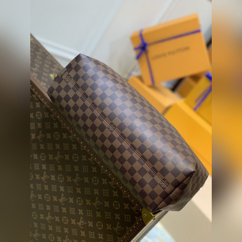 면세 N44045 큰 커피 그리드 빨간색 안감 쇼핑백 오리지널 모노그램