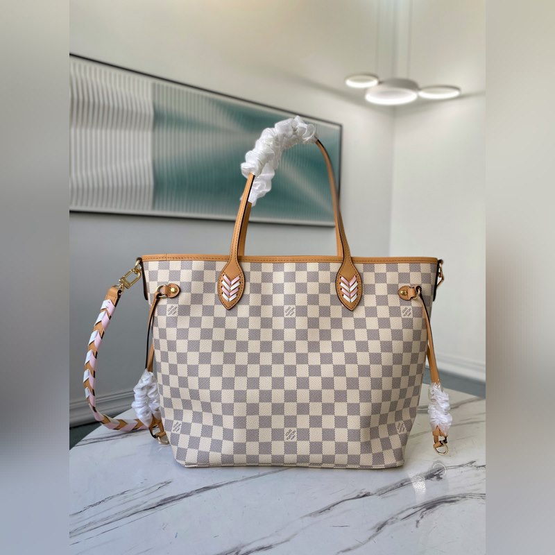 LV 아이템 번호: N50047 흰색 체크무늬 쇼핑백 네버풀 클래식 핸