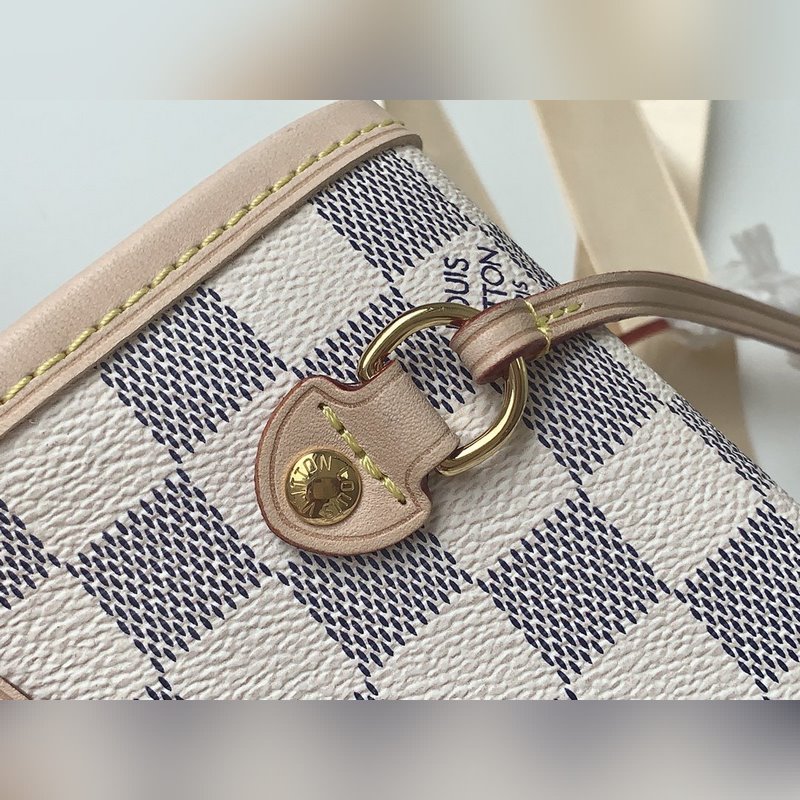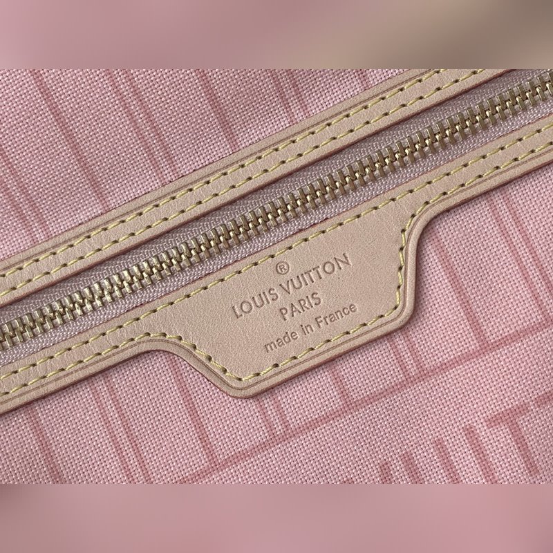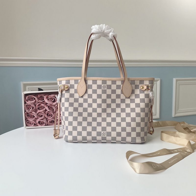LV 29cm 작은 쇼핑백 모델 M41363 작은 흰색 격자 핑크 안감