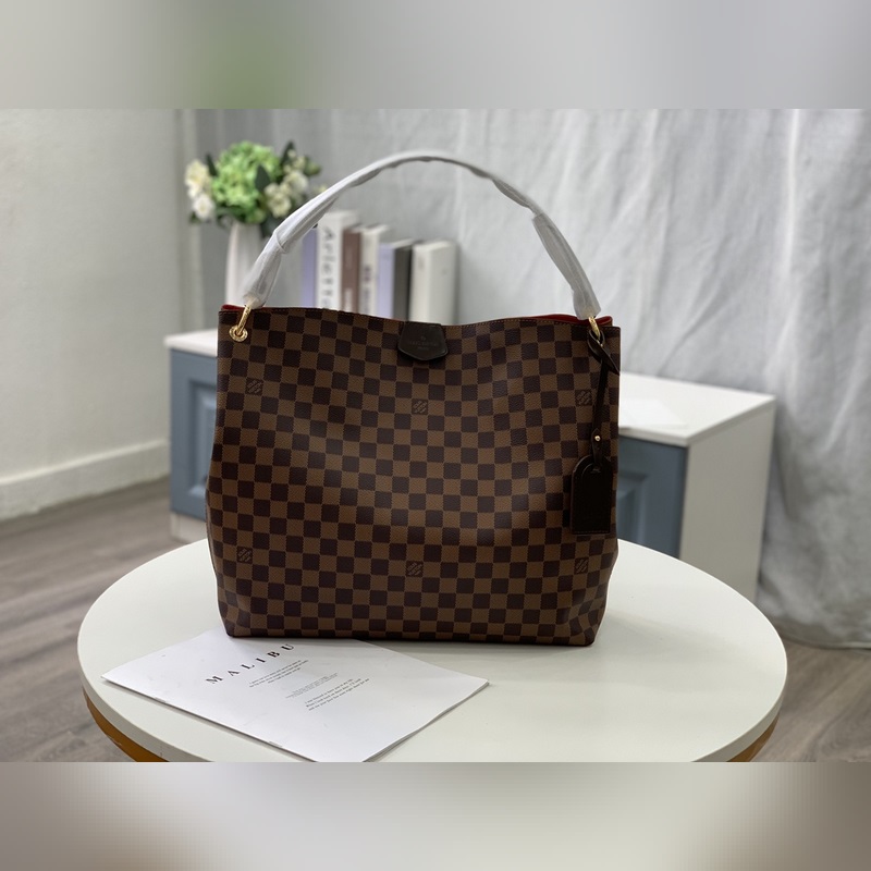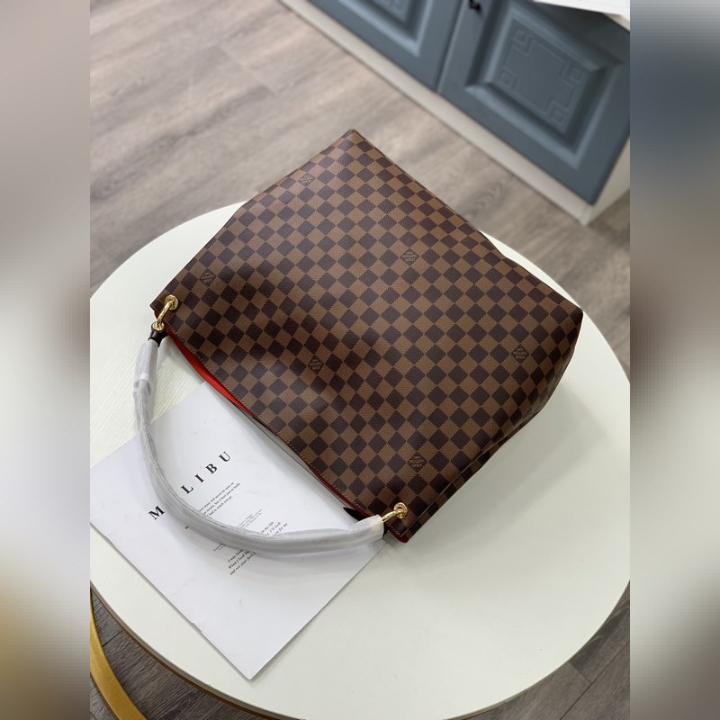 LV 신모델 모델 번호: N44045 갈색 격자무늬 큰 빨간색 안감
