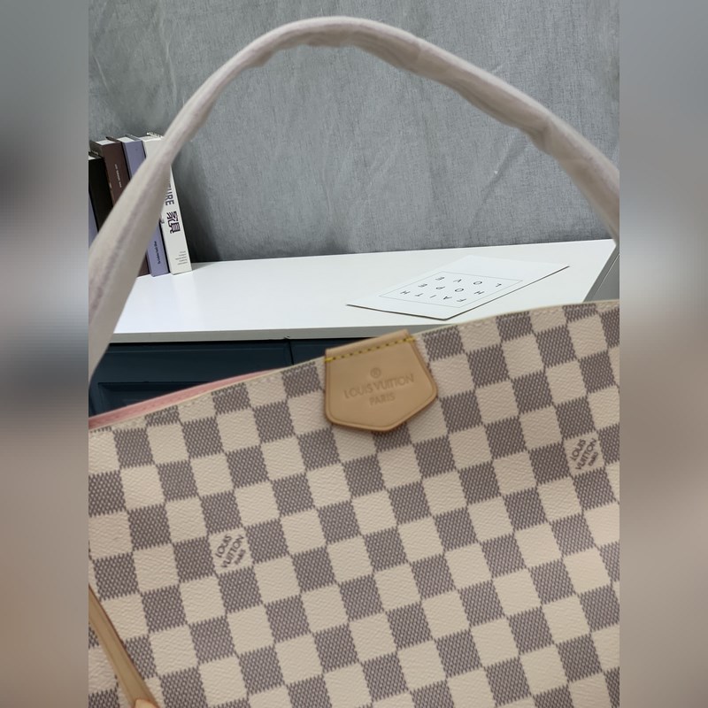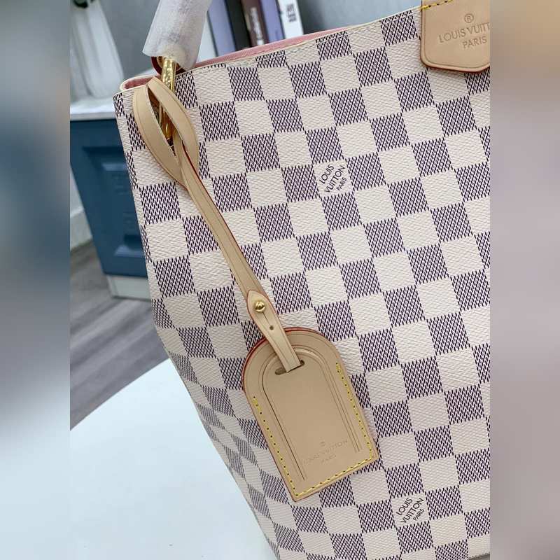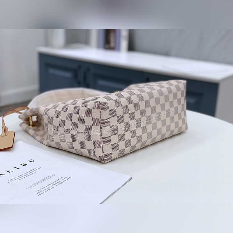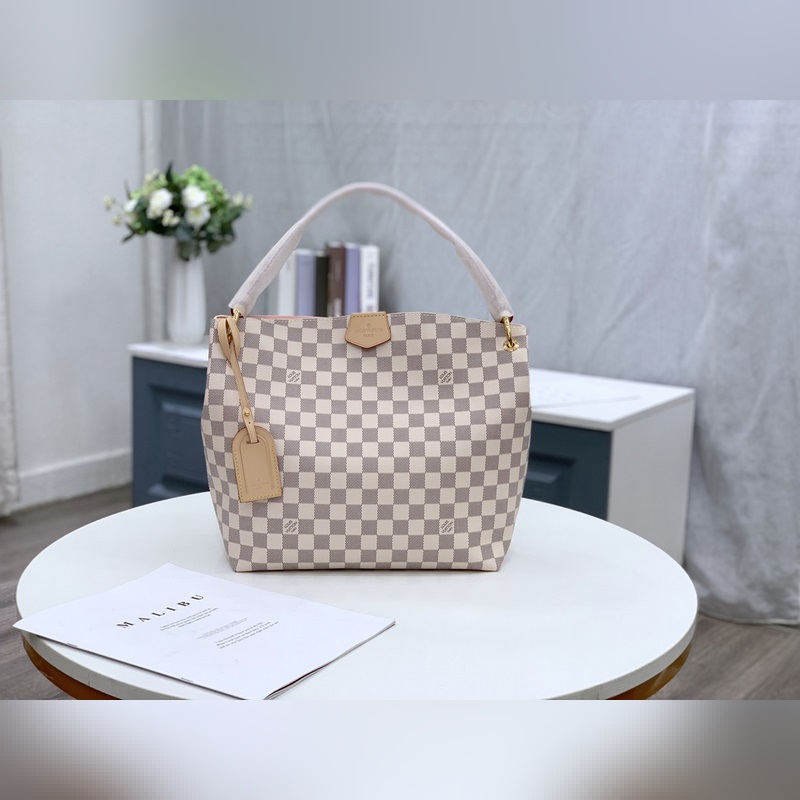LV 모델 번호: M42249 작은 흰색 격자 무늬 분홍색 핸드백 모노그