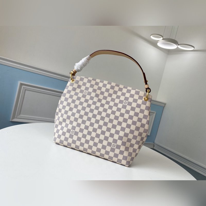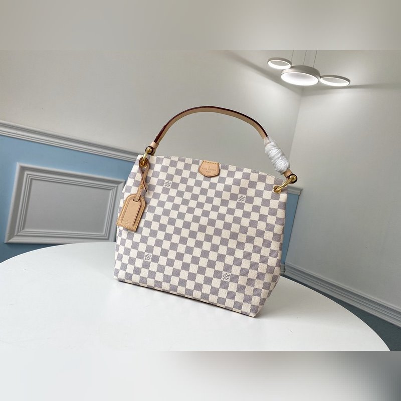 LV 모델 M42248 화이트 그리드 살구색 소형 핸드백 모노그램 캔버스