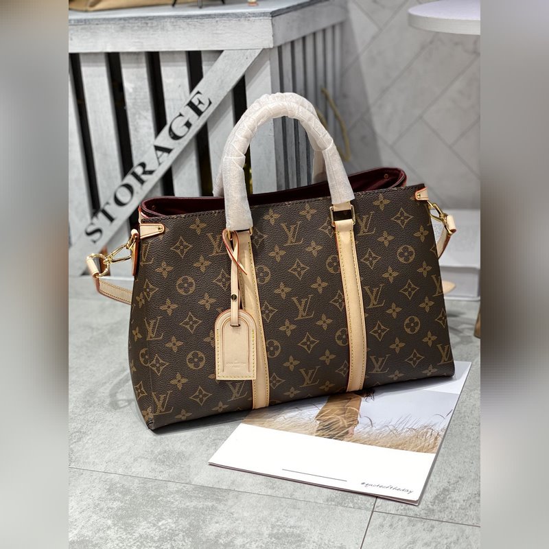LV 모델 M42248 화이트 그리드 살구색 소형 핸드백 모노그램 캔버스