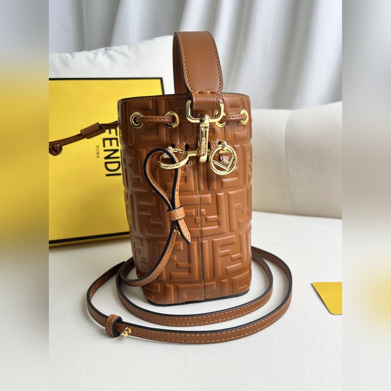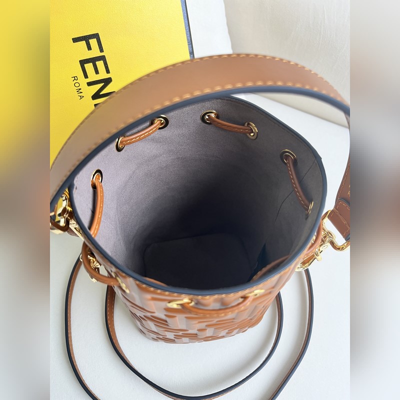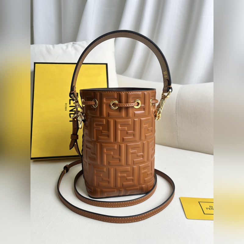 갈색 압화 Mon Tresor 라이트 블루 가죽 미니 핸드백 상세 정보 Mon Tresor 소형 버킷 백 드로우스트링과 펜디 메탈 로고 장식이 특징입니다. 탈부착 가능한 롱/숏 숄더 스트랩 2개가 포함되어 핸드백 숄더백 또는 크로스백으로 활용 가능합니다. 라이트 블루 송아지 가죽 소재. 블랙 핸드페인팅 엠보싱 FF 시그니처 프린트 패턴. 골드 메탈 디테일. 이탈리아 제작 소재: 겉감: 소가죽 안감: 직물 깊이: 10 길이: 12 높이: 18 모델 번호: 226