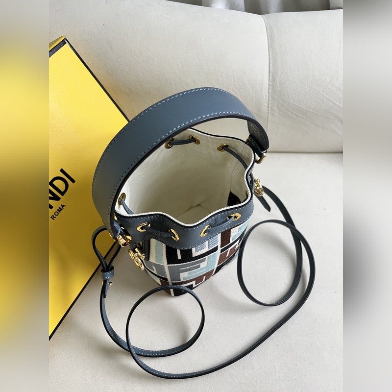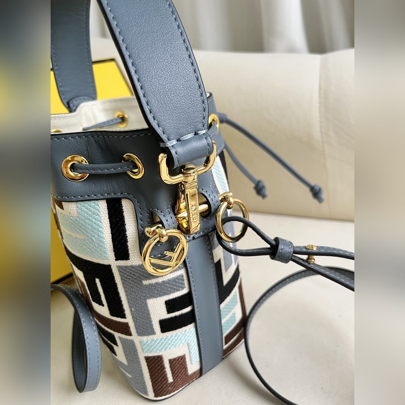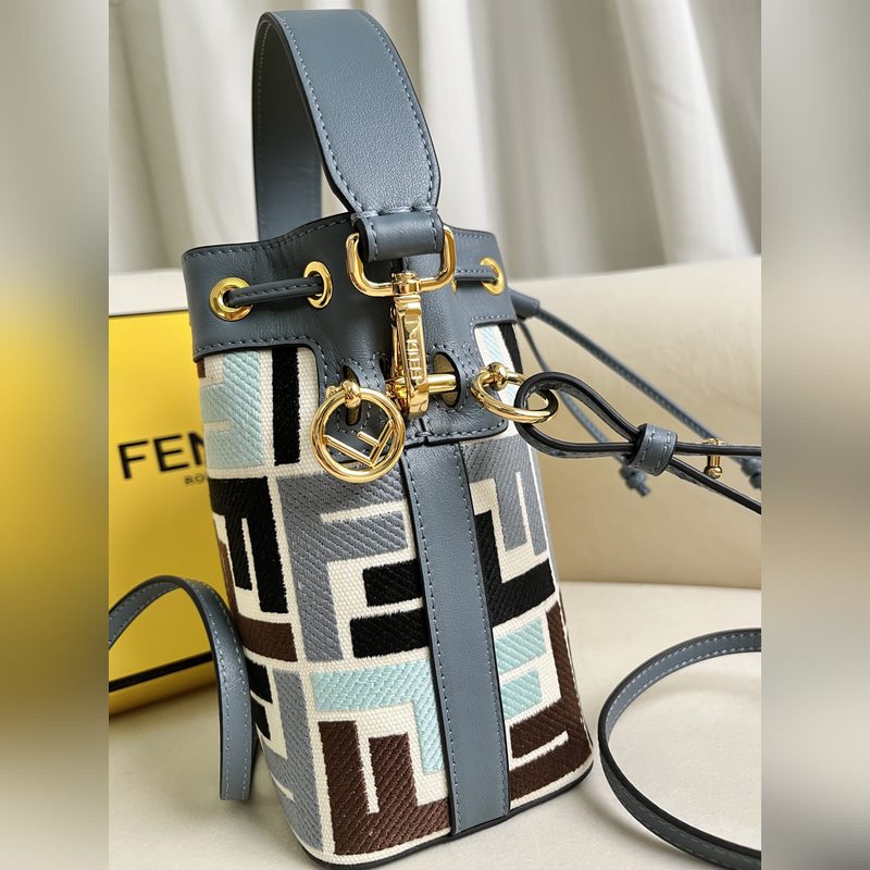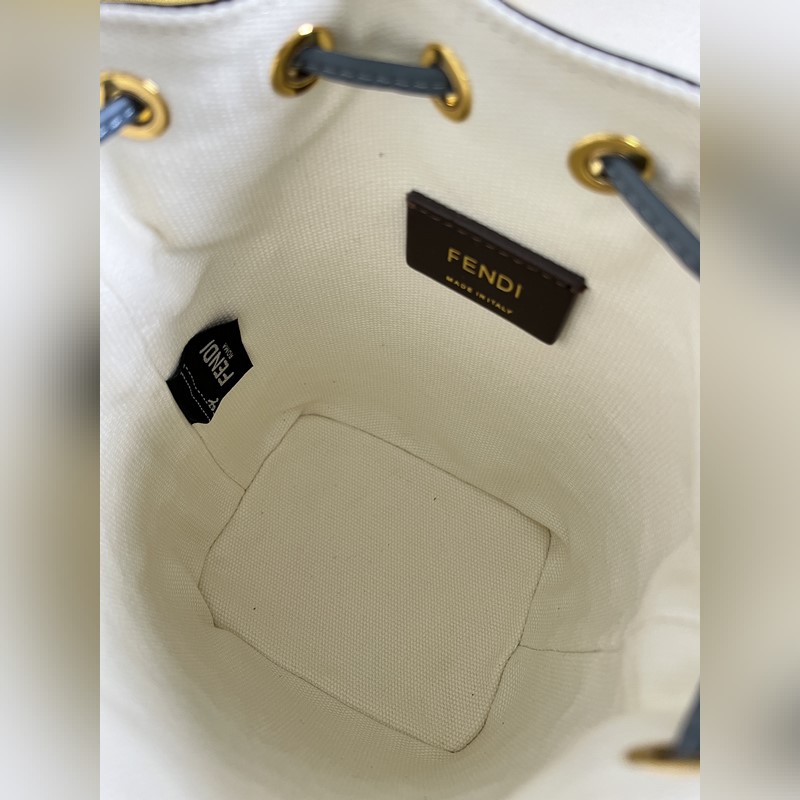 파란 천 Mon Tresor 옅은 파란 가죽 미니 핸드백 더 보기 Mon Tresor 소형 버킷 백 드로우스트링과 펜디 메탈 로고 장식이 특징입니다. 탈부착 가능한 롱/숏 숄더 스트랩 2개가 포함되어 핸드백 숄더백 또는 크로스백으로 활용 가능합니다. 라이트 블루 송아지 가죽 소재. 블랙 핸드페인팅 엠보싱 FF 시그니처 프린트 패턴. 골드 메탈 디테일. 이탈리아 제작 소재: 겉감: 소가죽 안감: 직물 깊이: 10 길이: 12 높이: 18 모델 번호: 226