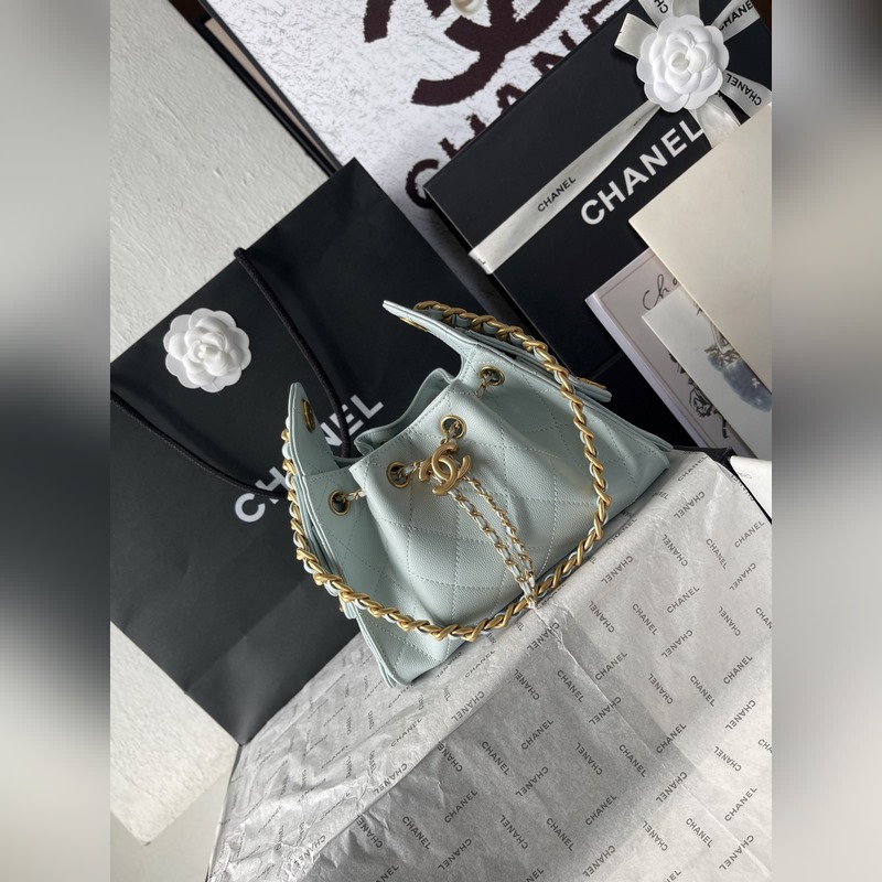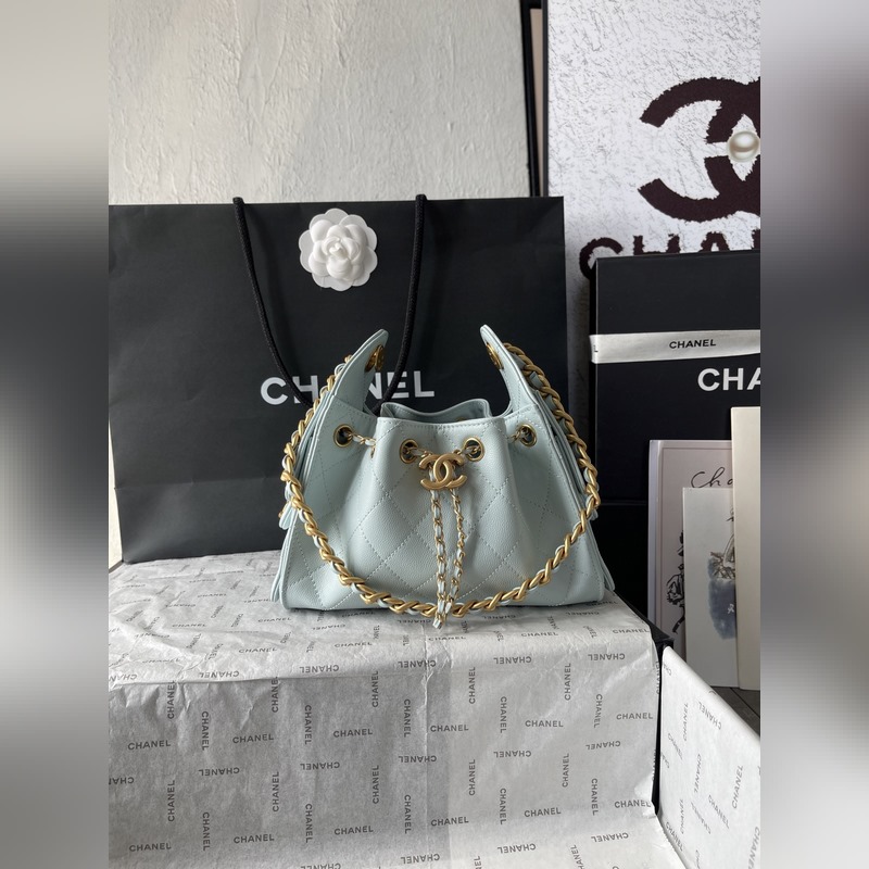 프랑스 하이엔드 맞춤 제품 샤넬 샤넬 25S 봄/여름 호보 드로우스트링 버킷 미니 25백 레트로 골드 버튼 드로우스트링 버킷백 + 헴 퀼팅 소가죽 클래식 체인 디자인 고급스러움 가득! 일상 외출 필수품 외관 정교하고 질감 섬세 캐주얼룩부터 정장까지 완벽하게 소화 모델 번호 AS5631 사이즈 20*22*12.5cm