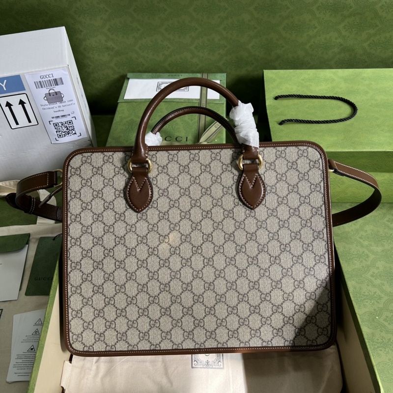 녹색 선물 가방에 포장된 GG 서류 가방 이 구조화된 서류 가방은 GG