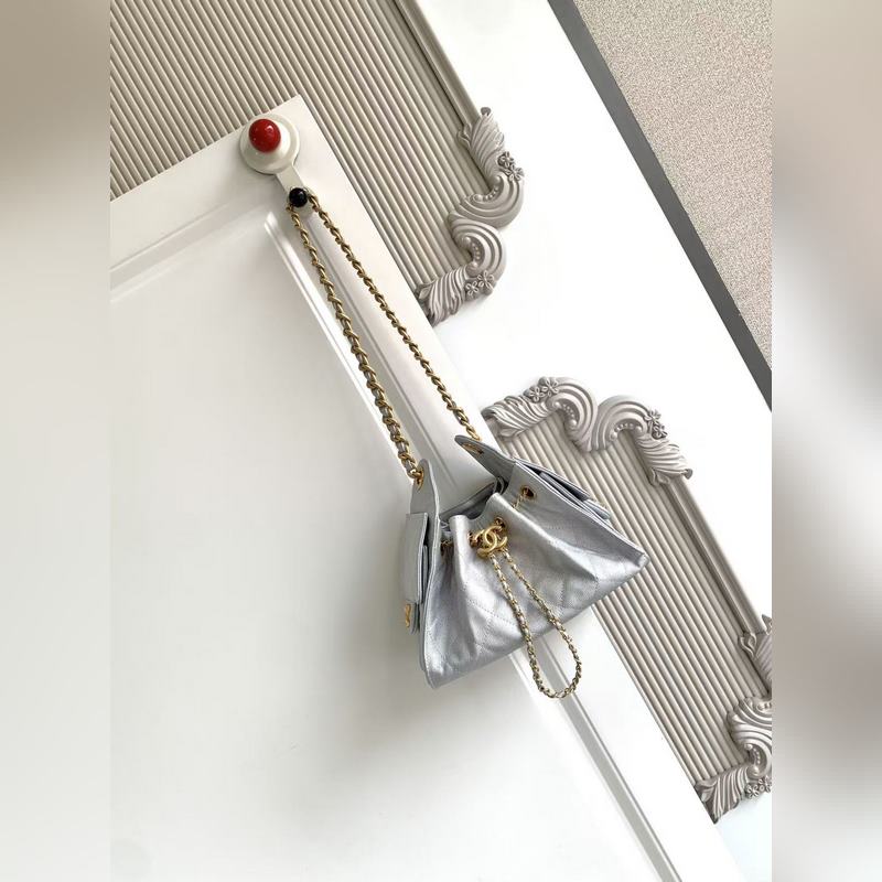 CNITFRAS5631 샤넬 25 시리즈 중 또 하나의 연도 명칭 모델 25c 볼 텍스처 가죽 힙합 백 샤넬 호보 백 액슬백 히피 액슬백 소형 빈티지 골드 버튼 드로우스트링 버킷백 + 헥사곤 패턴 + 빈티지 블랙 골드 클래식 체인 디자인 고급스러움 가득! 일상 외출 필수품 외관 정교하고 질감 섬세하여 캐주얼룩부터 정장까지 모두 완벽하게 소화 가능 사이즈: 20x22x12.5cm