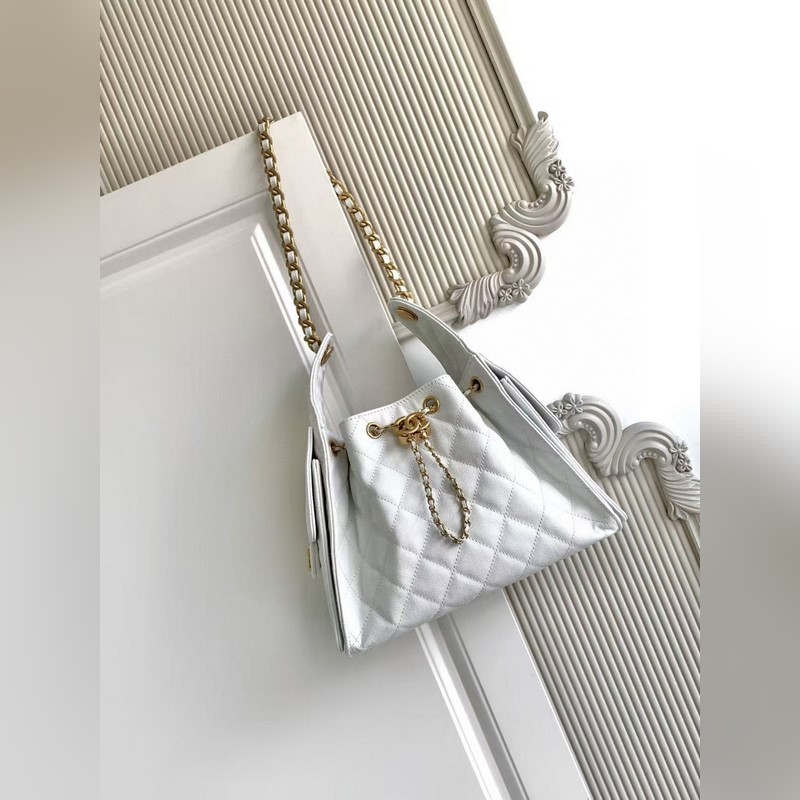 CNITFRAS5293샤넬 25 시리즈 중 또 하나의 연도 명칭 모델 25c 볼 텍스처 가죽 힙합 백 샤넬 호보 백 액슬 백 히피 액슬 백 소형 빈티지 골드 버튼 드로우스트링 버킷 백 + 헥사곤 패턴 + 빈티지 블랙 골드 클래식 체인 디자인 고급스러움 가득! 일상 외출 필수품 외관 정교하고 질감 섬세하여 캐주얼룩부터 정장까지 완벽하게 소화 가능 사이즈: 30x26x14cm