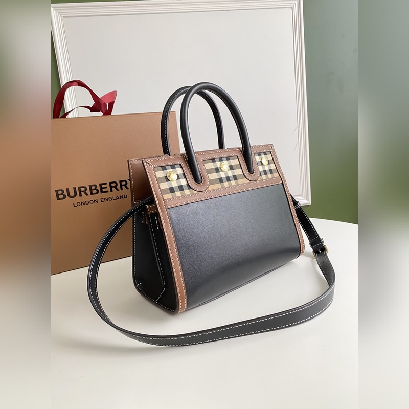 버버리의 절묘한 타이틀 - 테이어 핸드백은 광택이 있는 투톤 가죽과