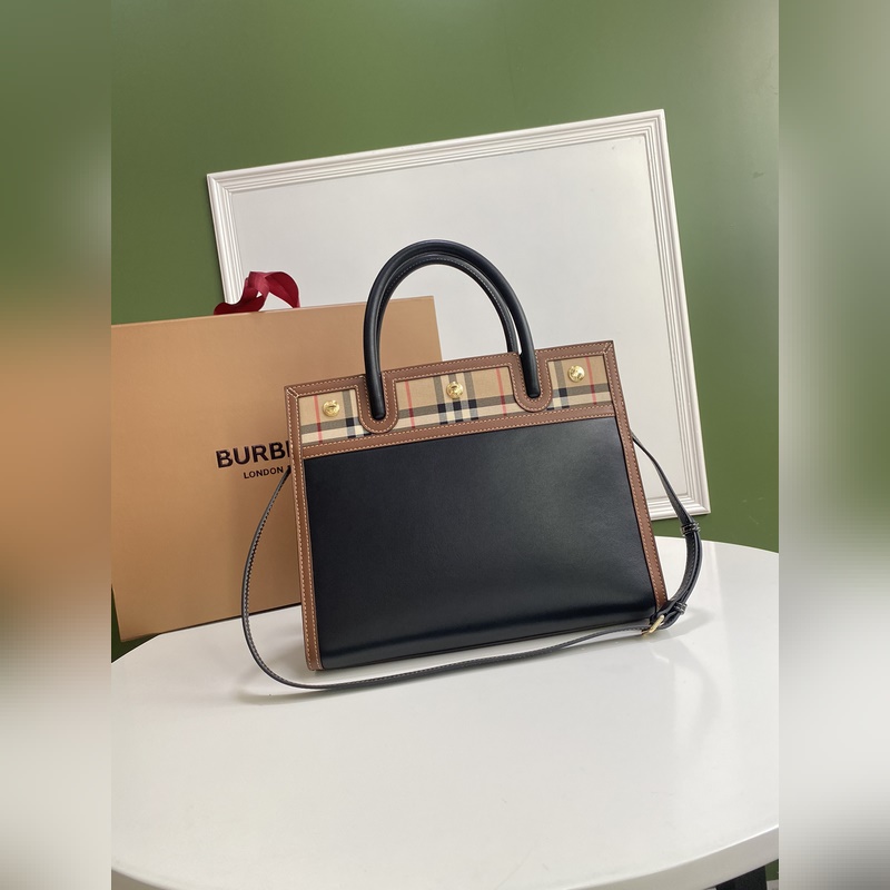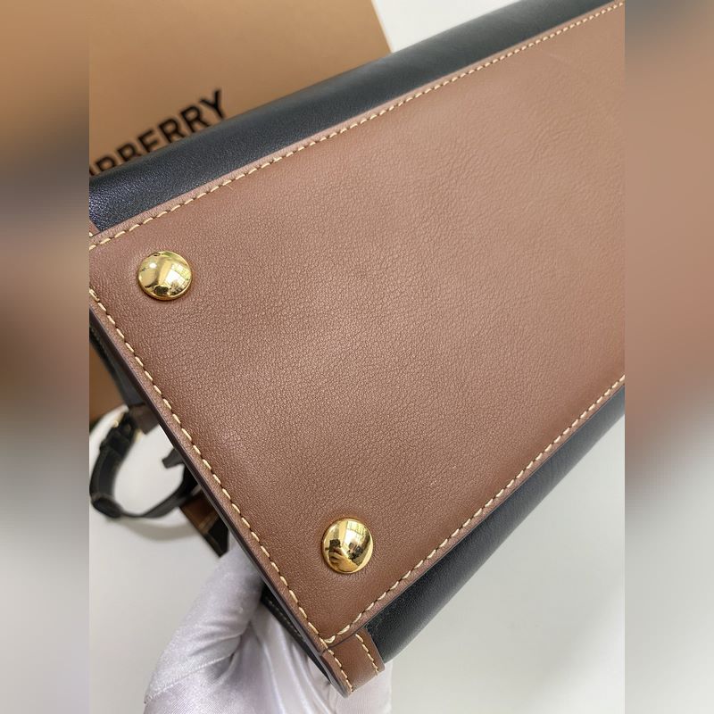 버버리의 절묘한 타이틀 - 테이어 핸드백은 광택이 있는 투톤 가죽과