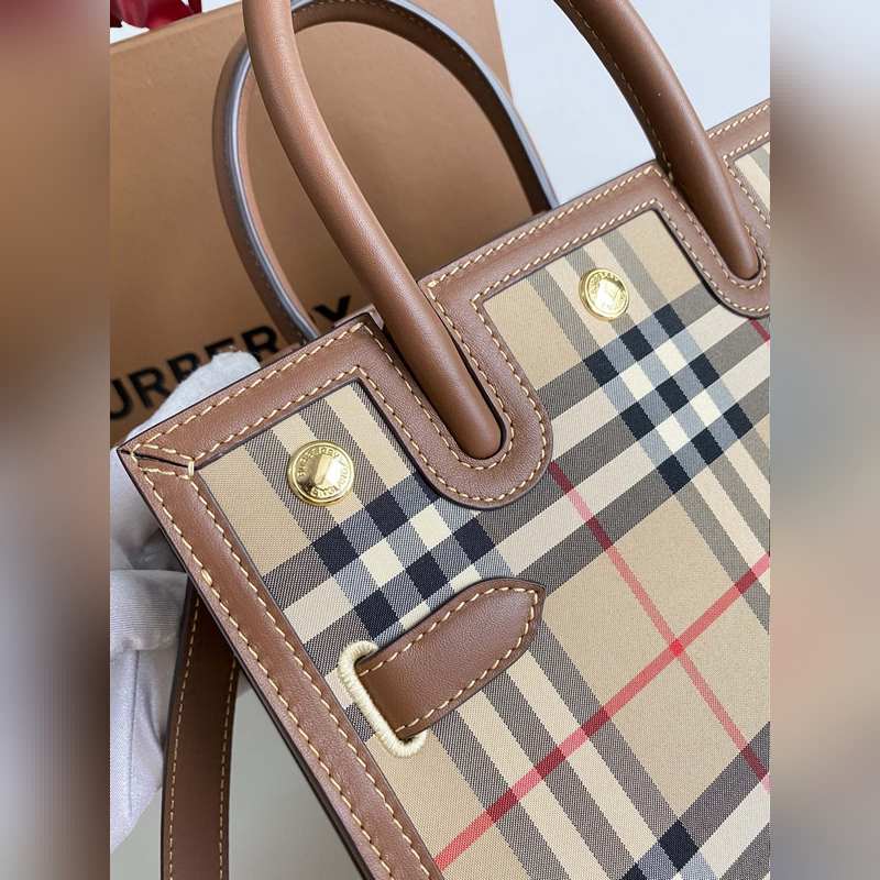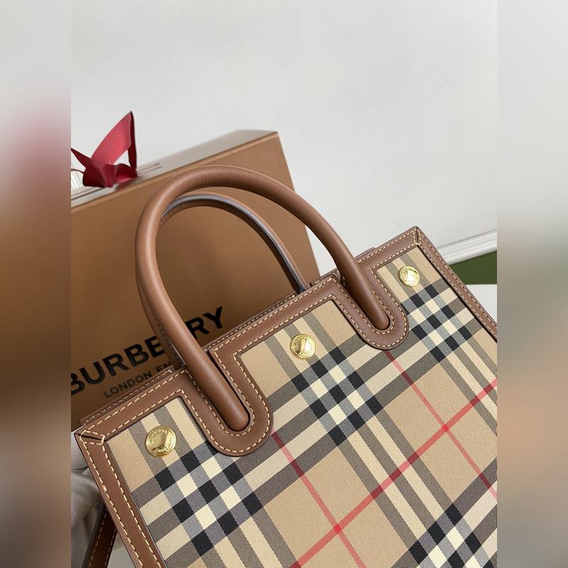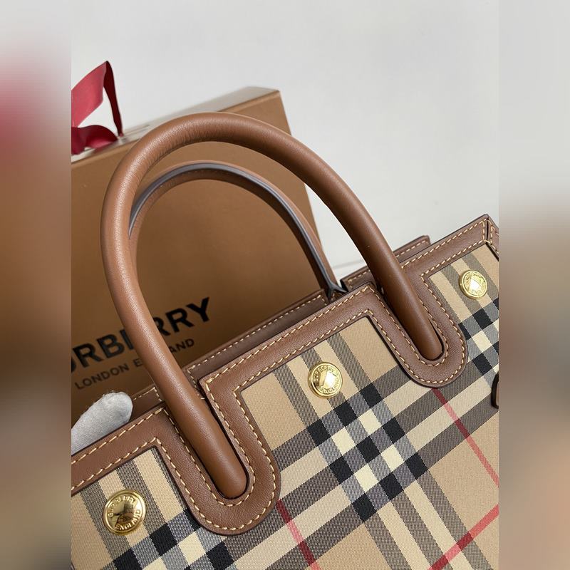 버버리 정교한 제목 - 테일러 핸드백 빈티지 타탄 패브릭으로 만들어졌