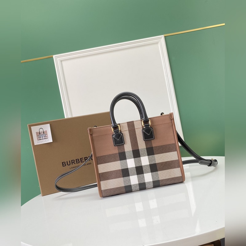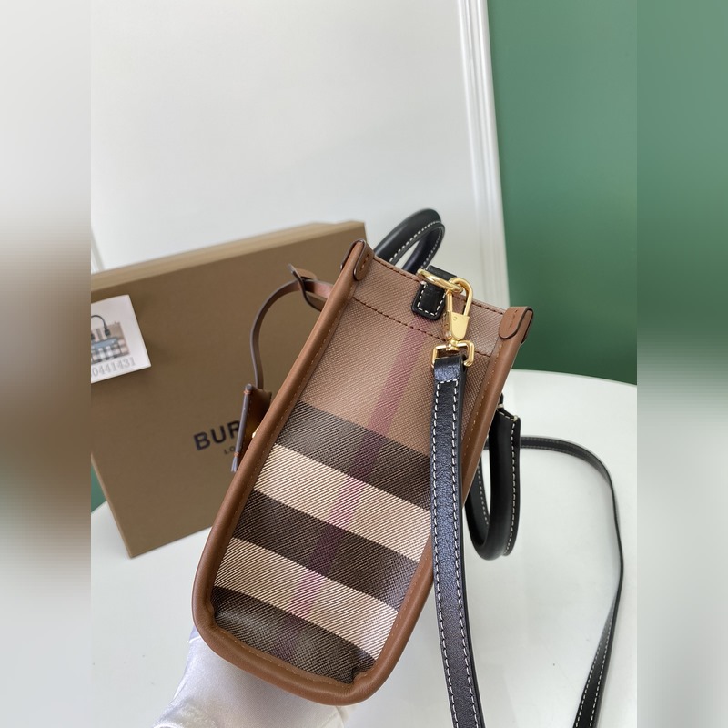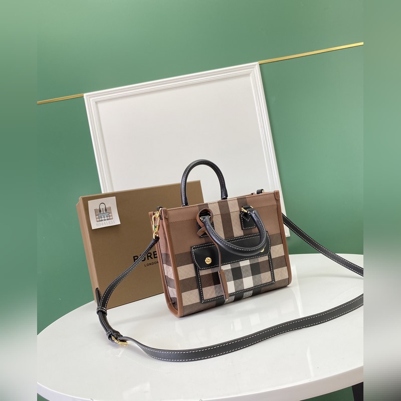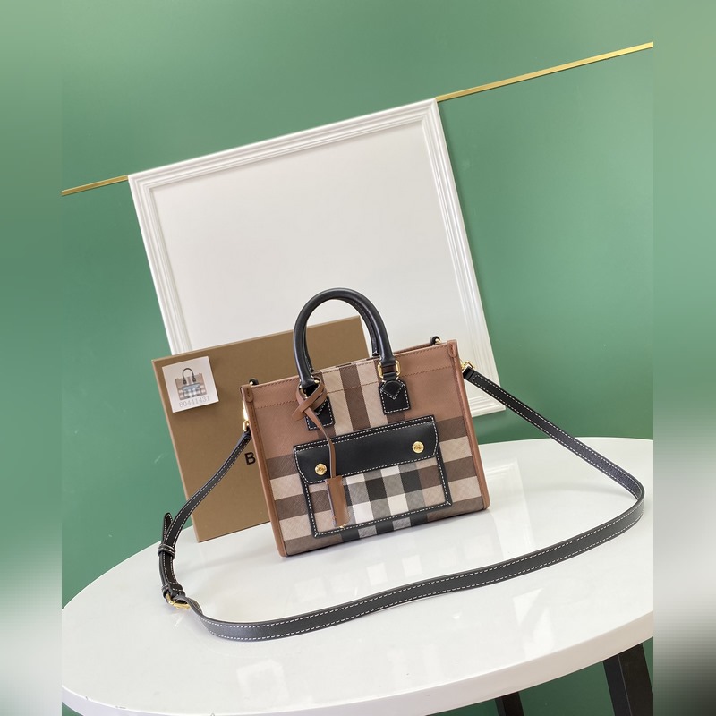 버버리 최신 미니 버치우드 체크 패턴 FRAYERE 토트백 컴팩트한