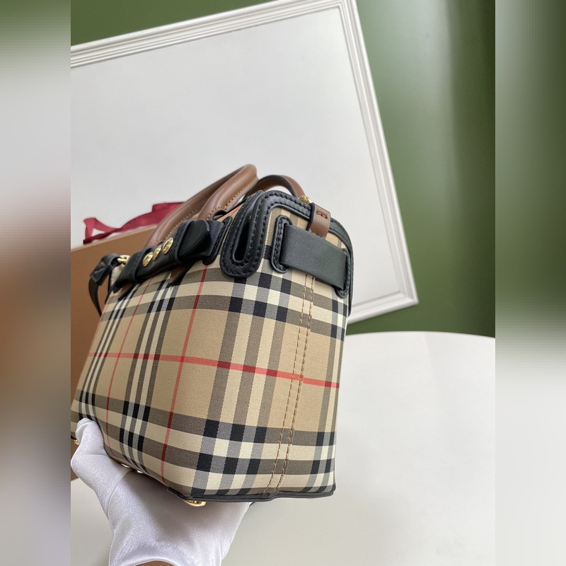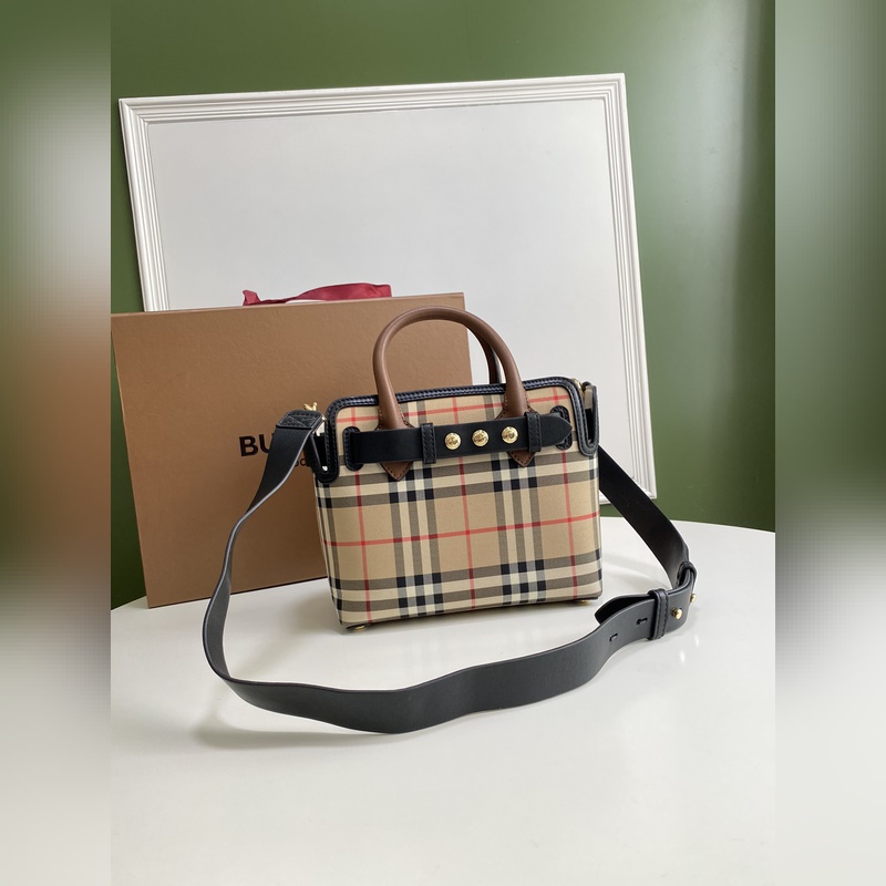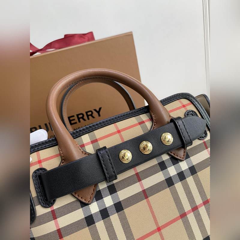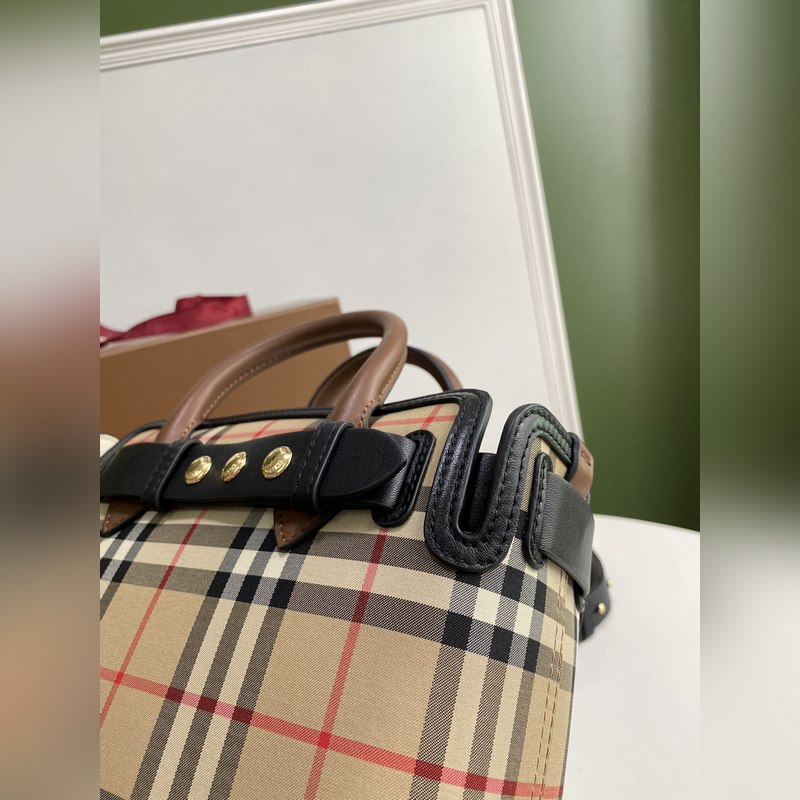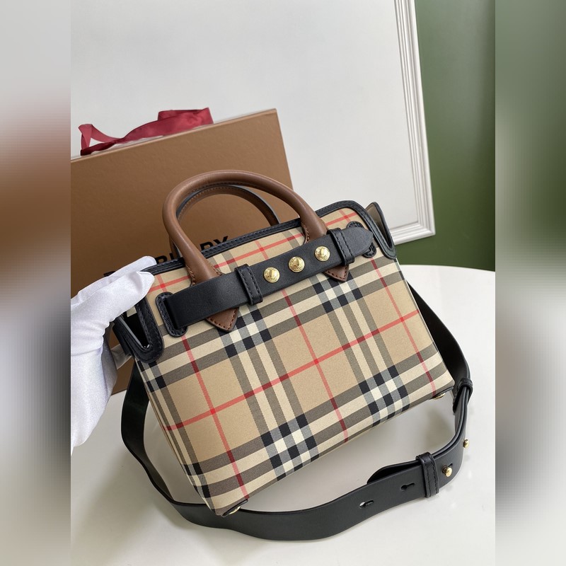 버버리 벨트 토트백 내부와 외부는 빈티지 타탄 패브릭과 세 가지 색조의