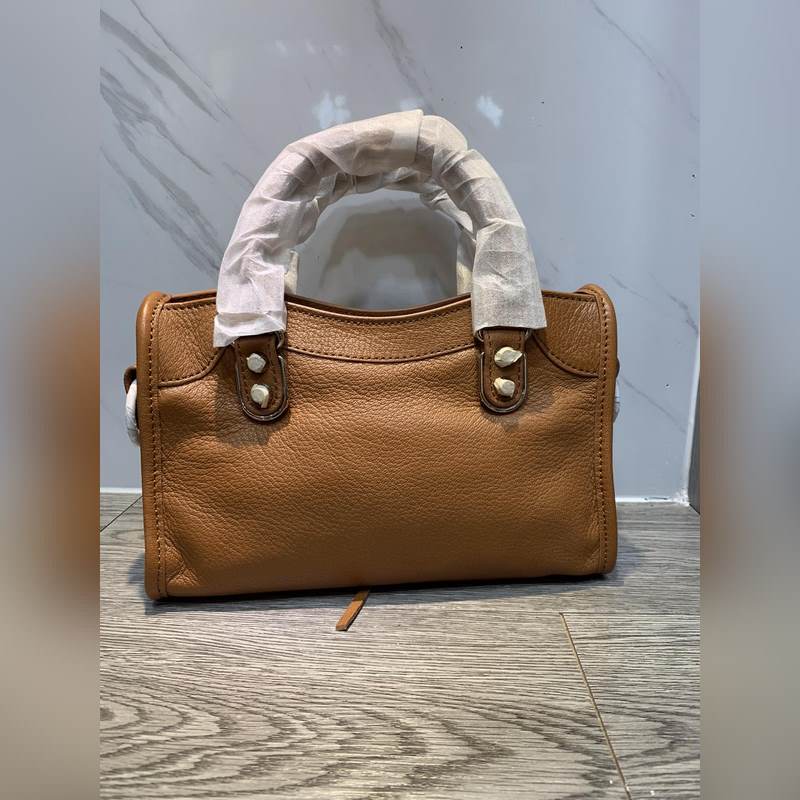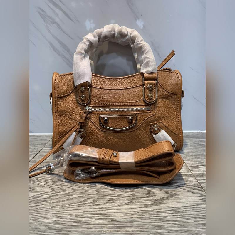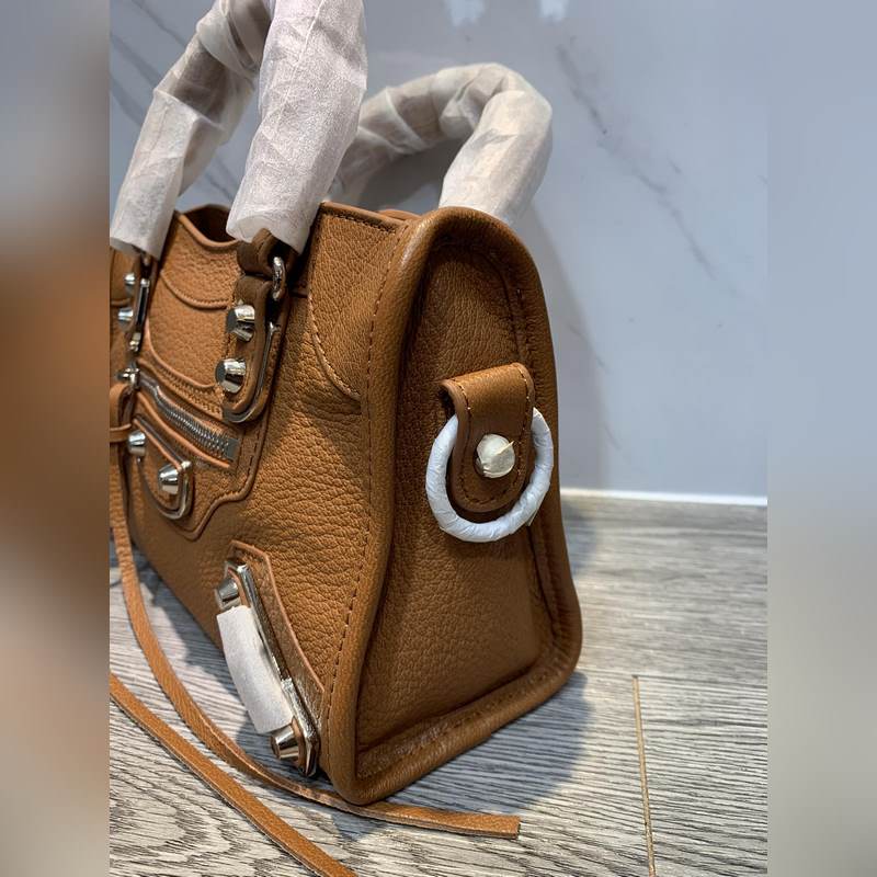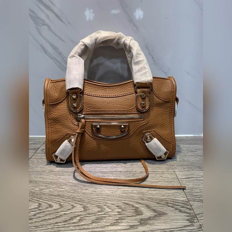 발렌시아가 염소 가죽 바이커 백 작은 은색 스터드 카키색 크기 24