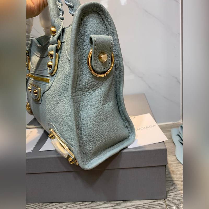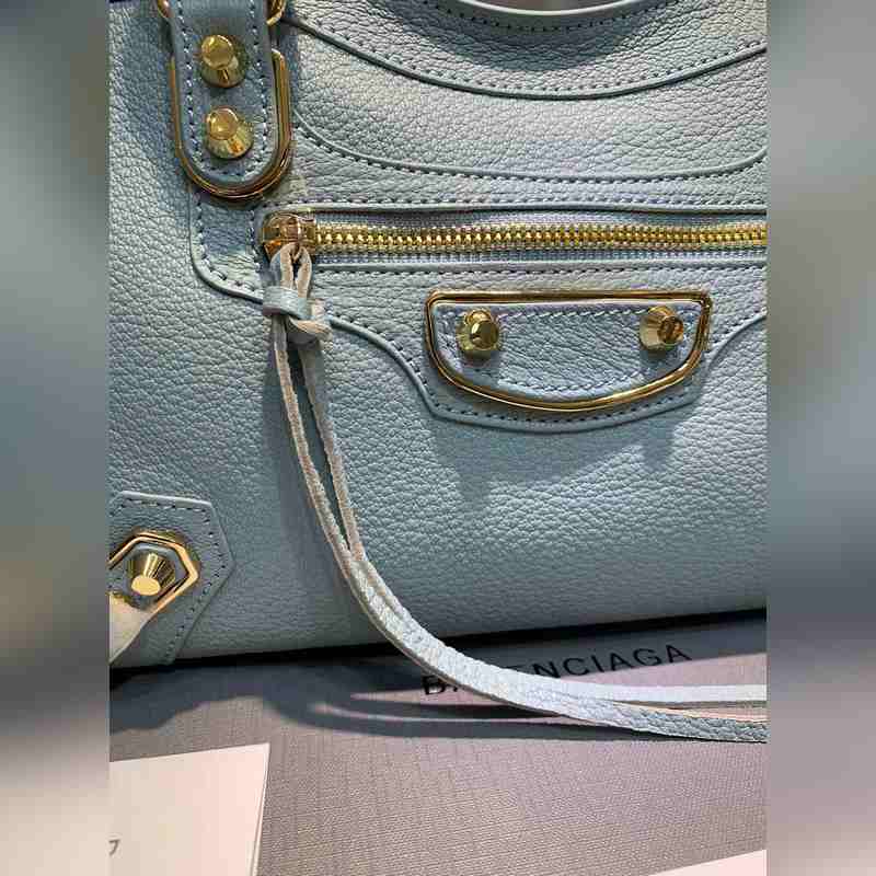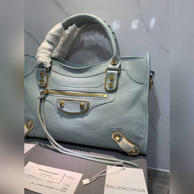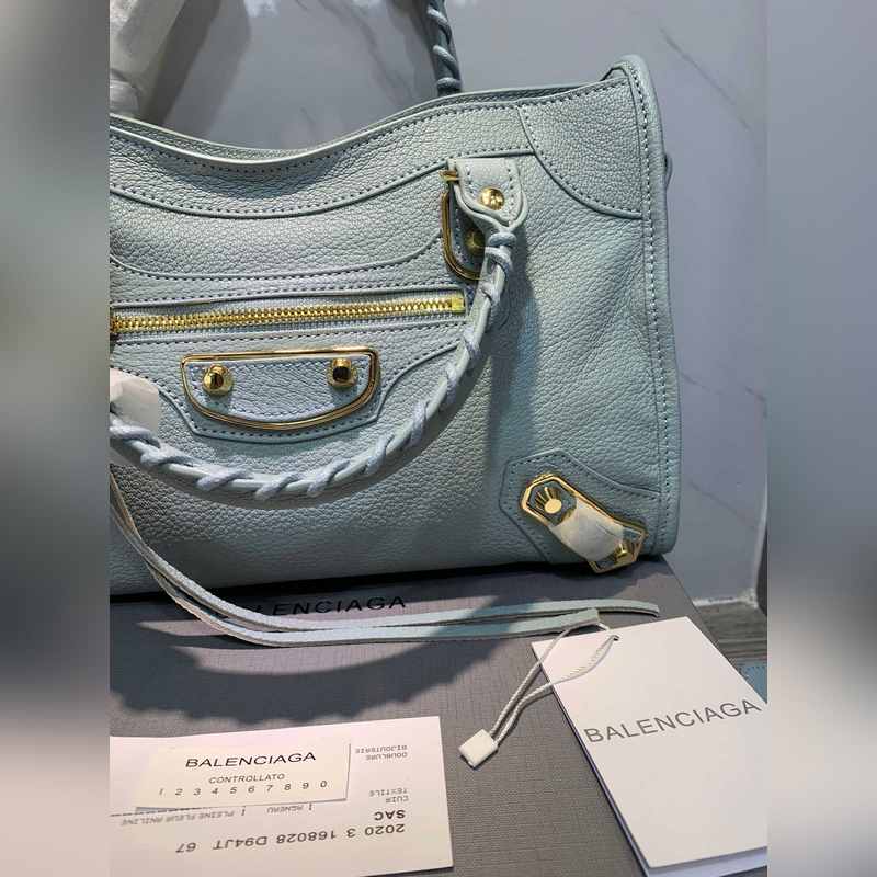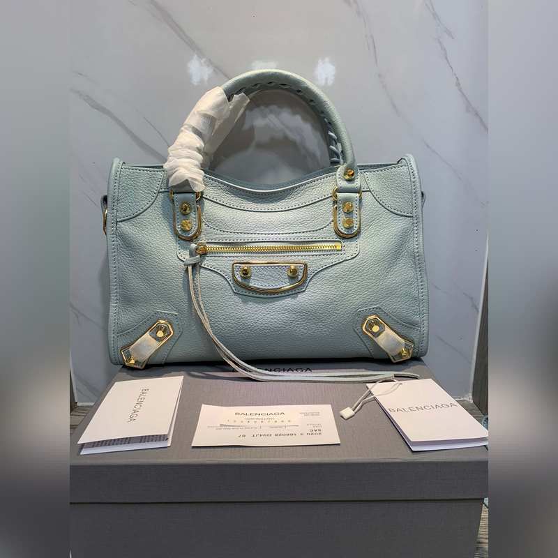 발렌시아가 염소 가죽 오토바이 가방 하늘색 중형 30cm 크기 30.