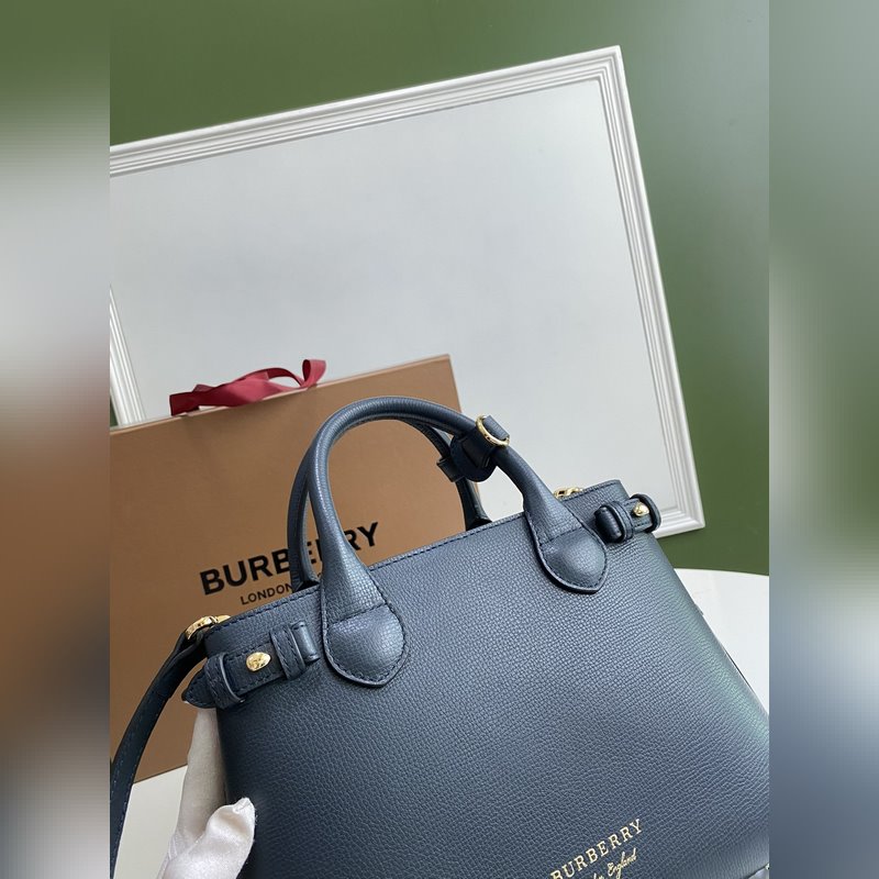 버버리 버버리 블루 7131 배너 토트백 하우스 체크 및 그레인 가죽