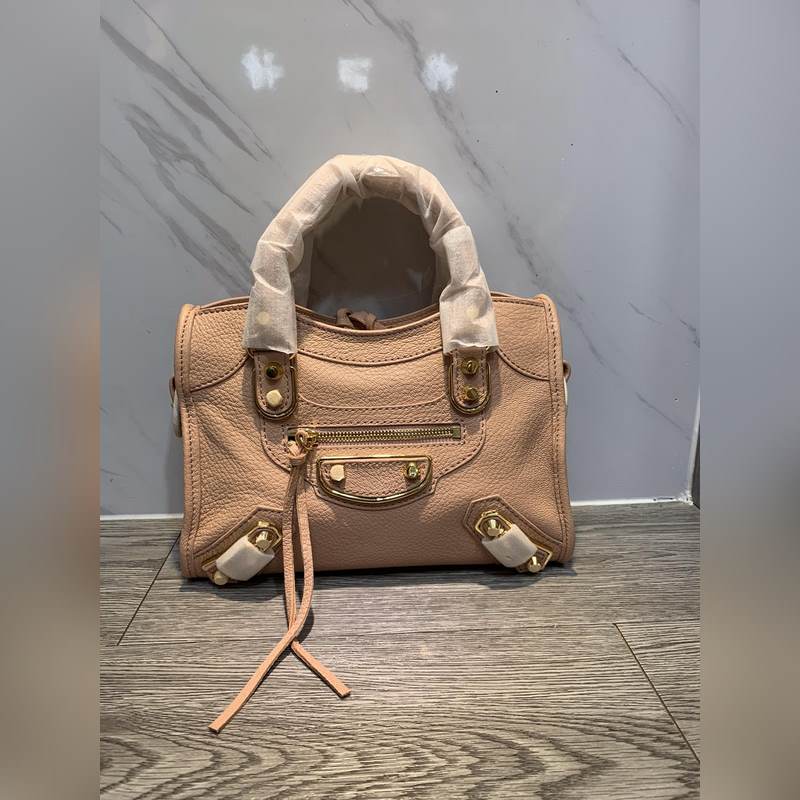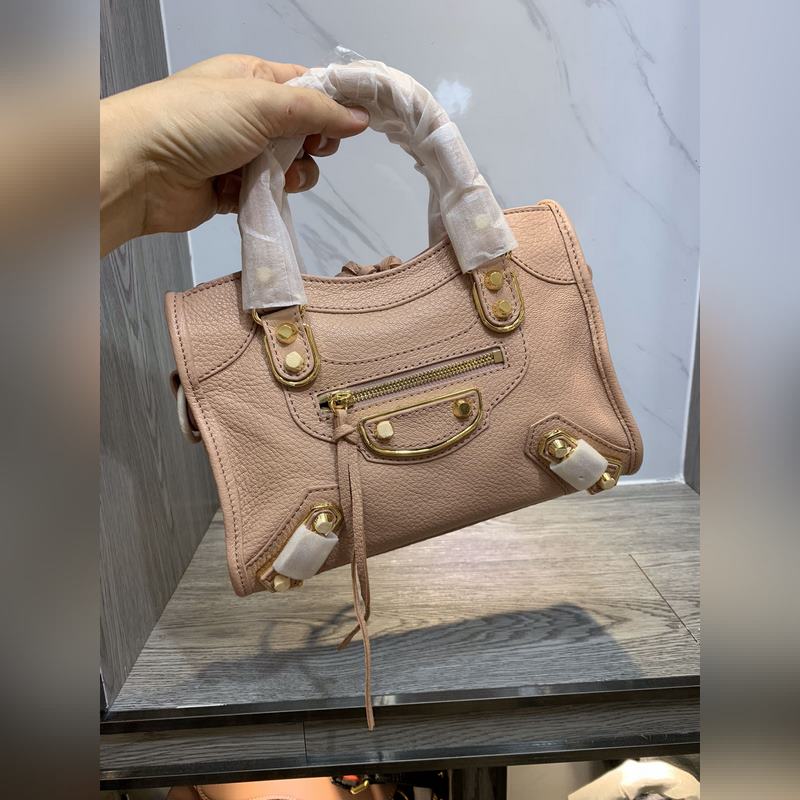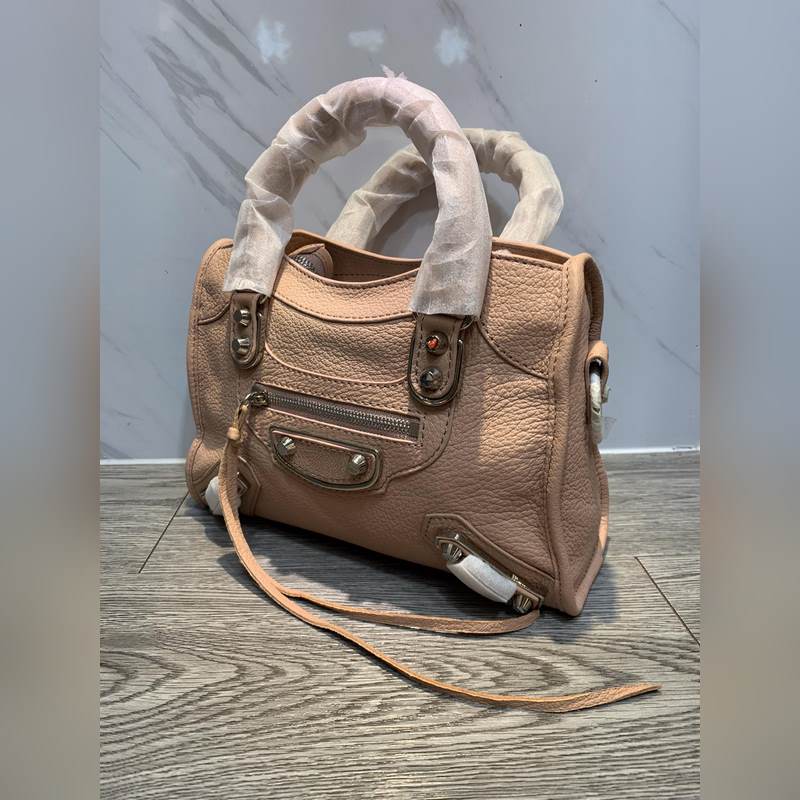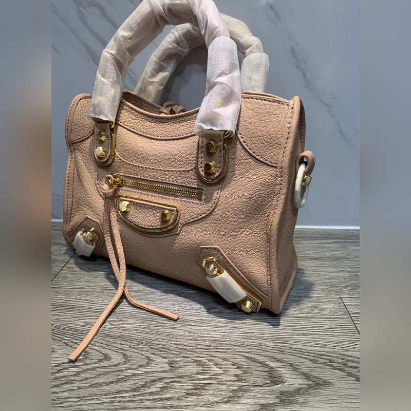 발렌시아가 염소 가죽 오토바이 가방 연분홍색 소형 은색 버클 2