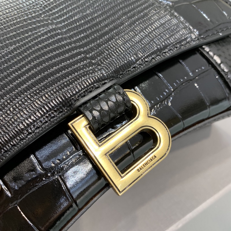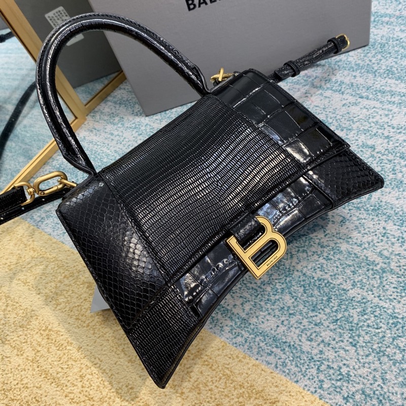 발렌시아가 삼단 S 사이즈 3피스 악어 도마뱀 가죽 모래시계 가방 라