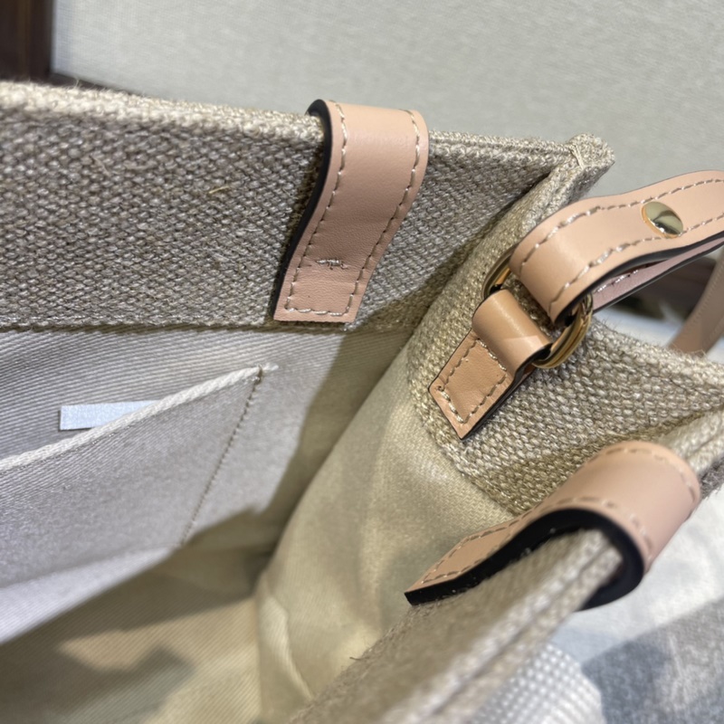 CHLOE 리넨 코튼 캔버스와 반짝이는 작은 가죽 토트백 핸드백 이 리폼