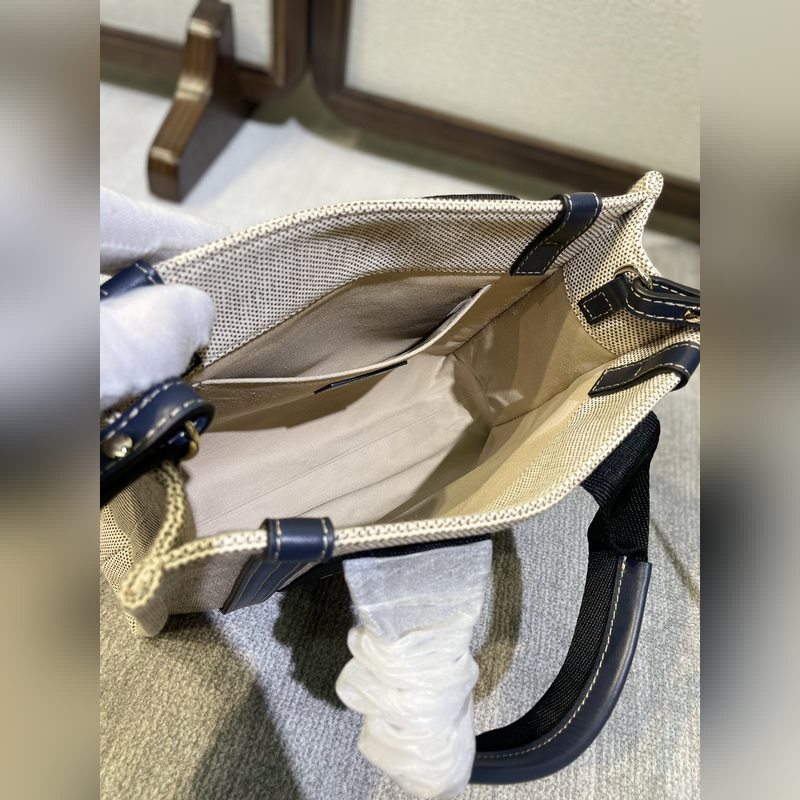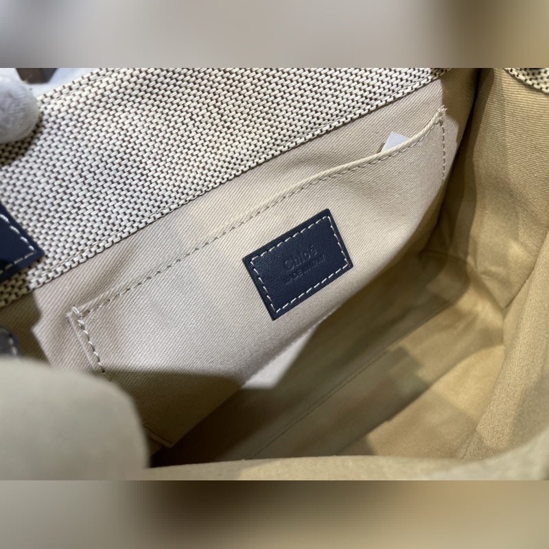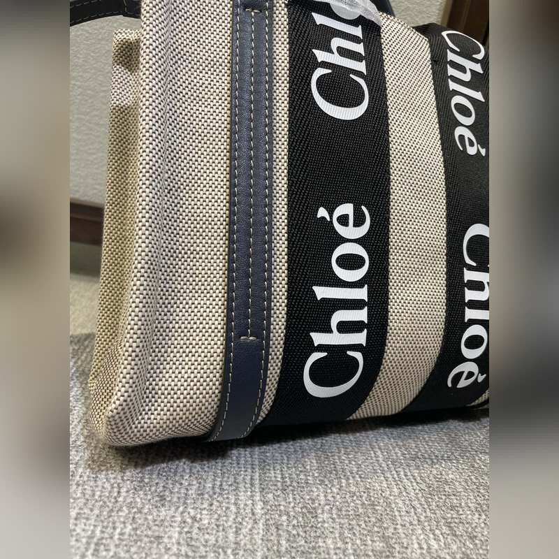 CHLOE 우디 토트 한정판 미드나잇 블루와 블랙 웨빙(숄더 스트랩 모델