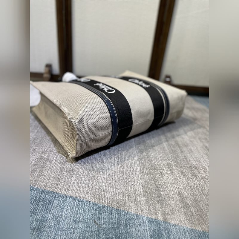 CHLOE 우디 토트 미드나잇 블루 리미티드 에디션 블랙 위브 검은색 직