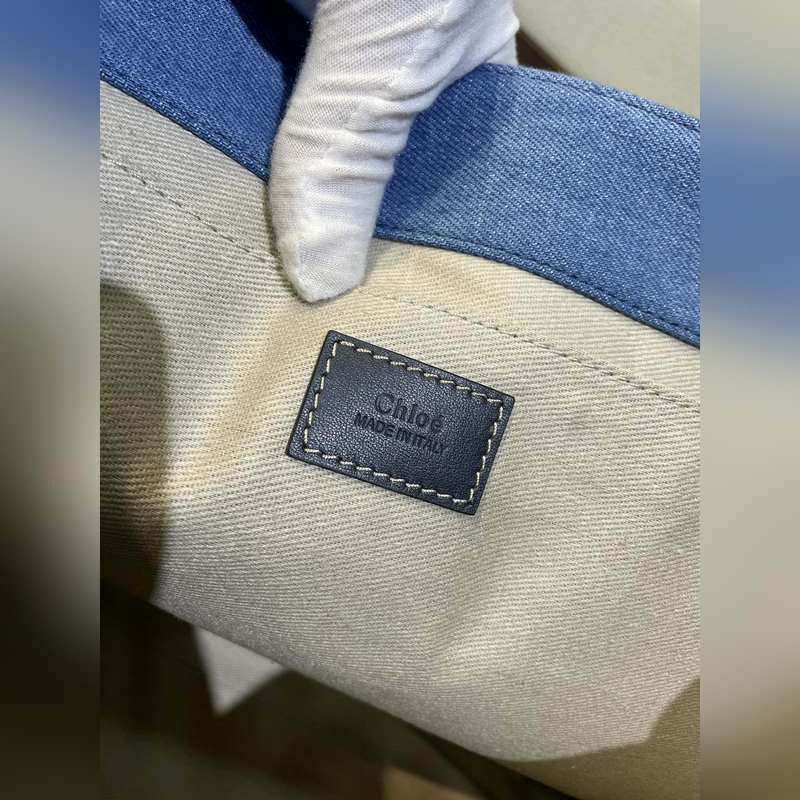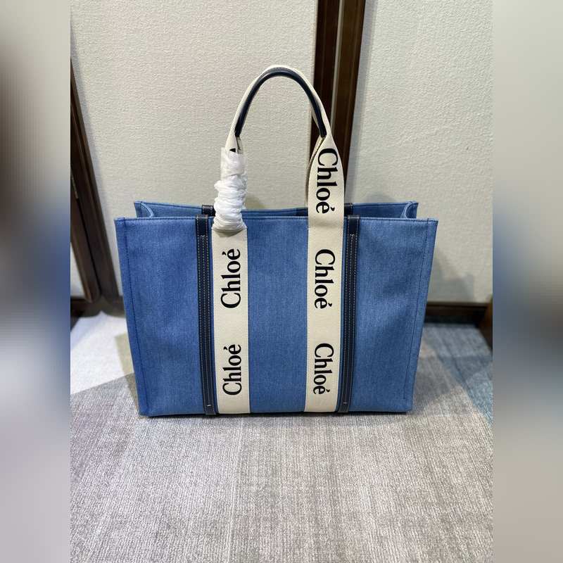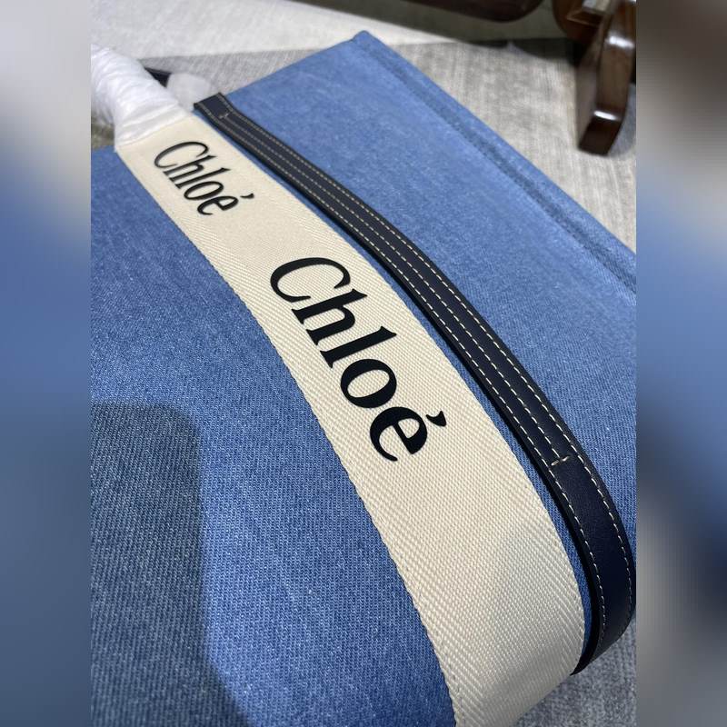 CHLOE 우디 토트 미드나잇 블루 리미티드 에디션 블랙 위브 검은색 직