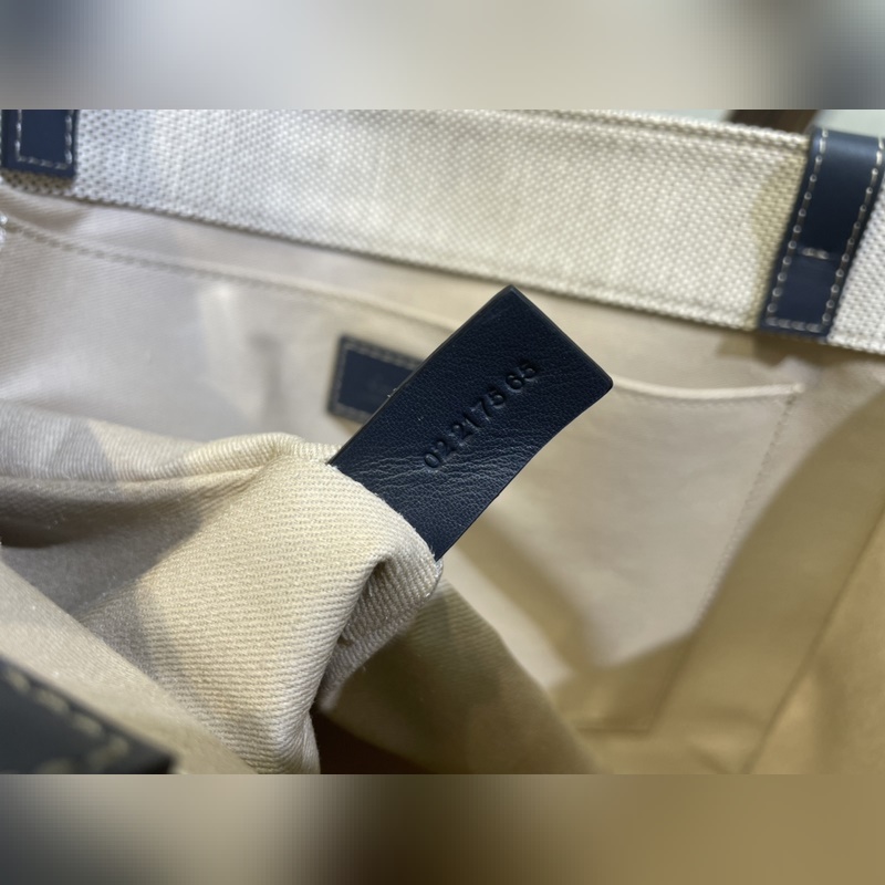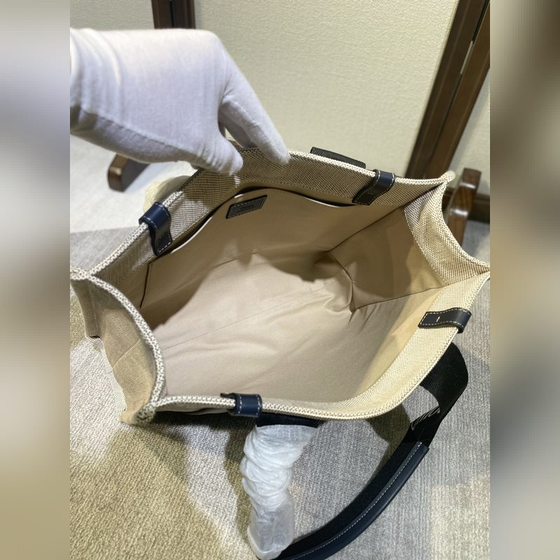 CHLOE 우디 토트 미드나잇 블루와 블랙 웨빙 베이지색 캔버스 소재의