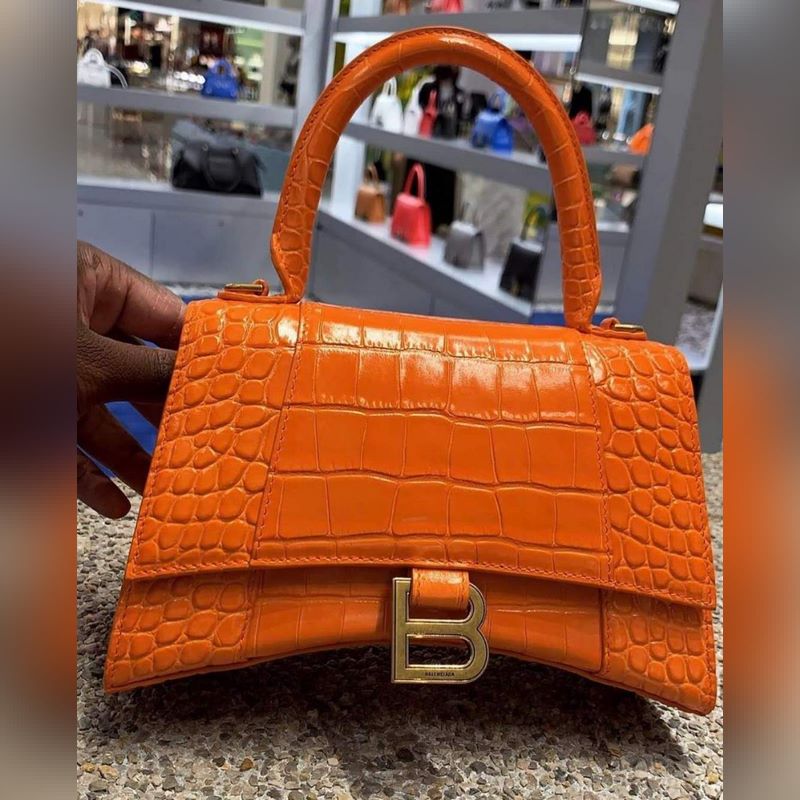 발렌시아가 금 버클 오렌지 악어 xs 이번 시즌의 무거운 모래시계 모양