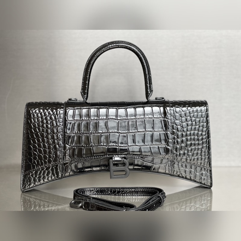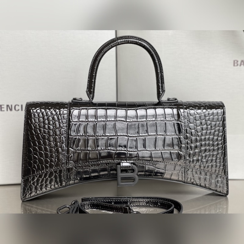 발렌시아가 [크로커다일 블랙/블랙 버클] 인기 있는 모래시계 가방이 더