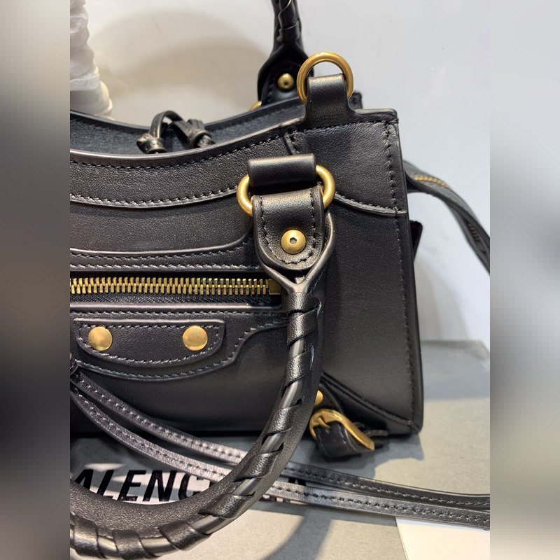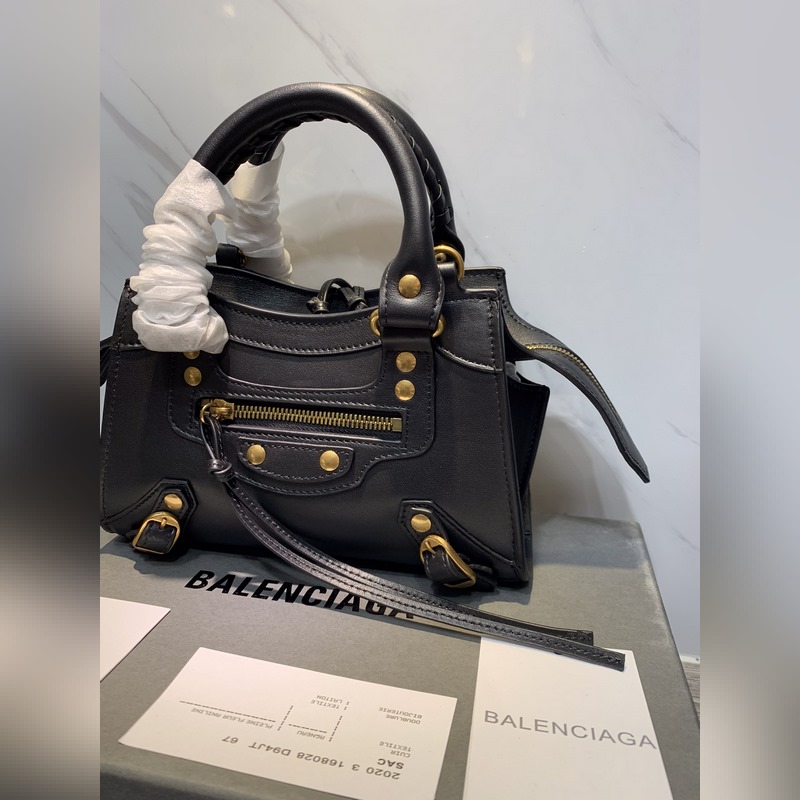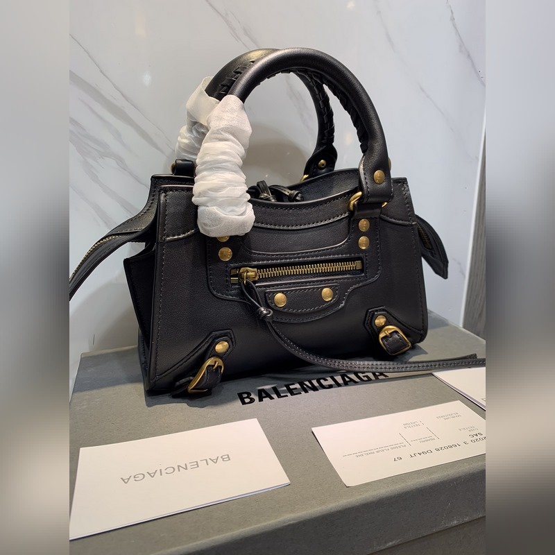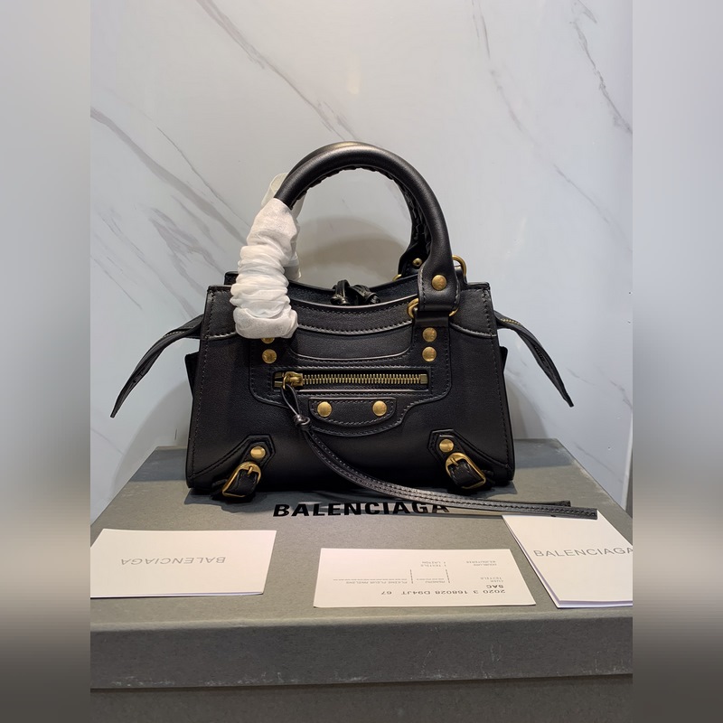 발렌시아가 새로운 오토바이 가방 검정색(금색 스터드) 소형 22cm