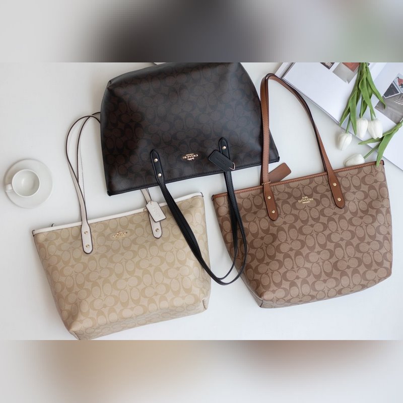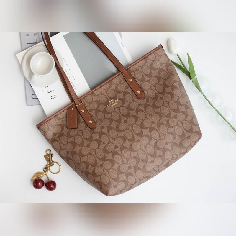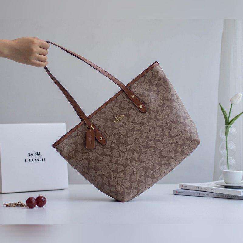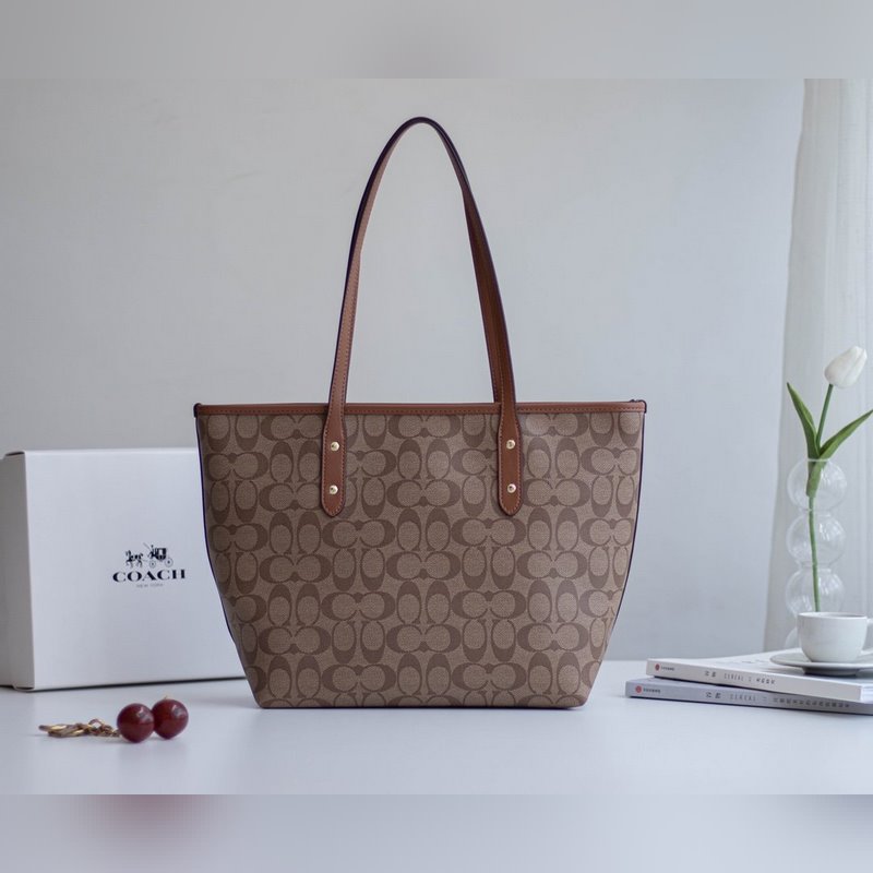 여성용 코치 가방 F58292 클래식 C자형 로고 PVC 및 가죽 여성용
