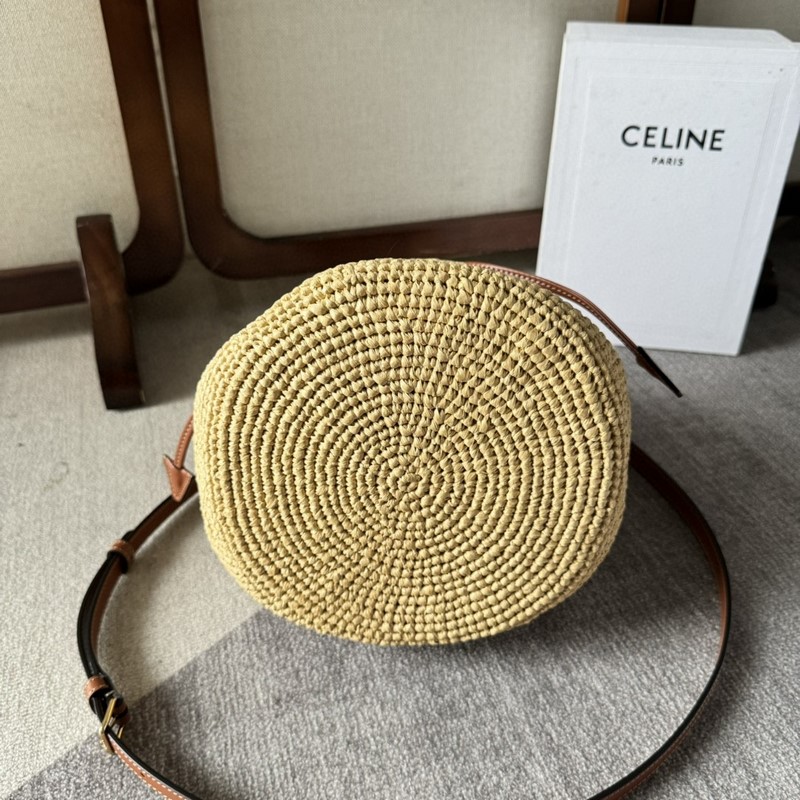 CELINEine clara 식물 소재와 소가죽 클래식 바구니 백 황