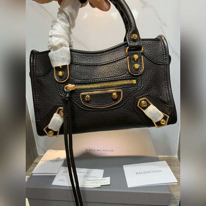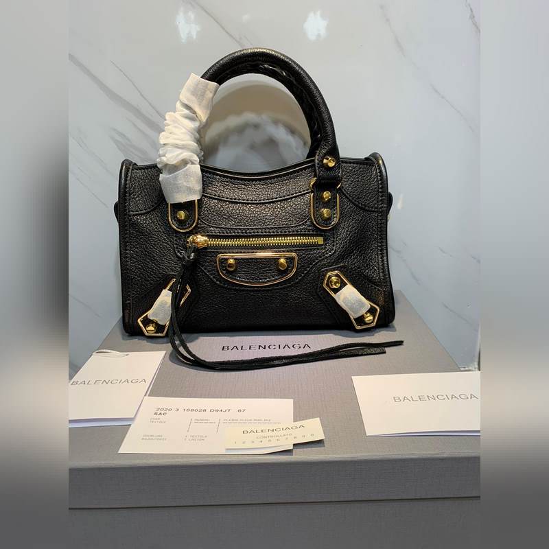 발렌시아가 염소 가죽 바이커 백 블랙 소형 24cm 크기 24.15.9