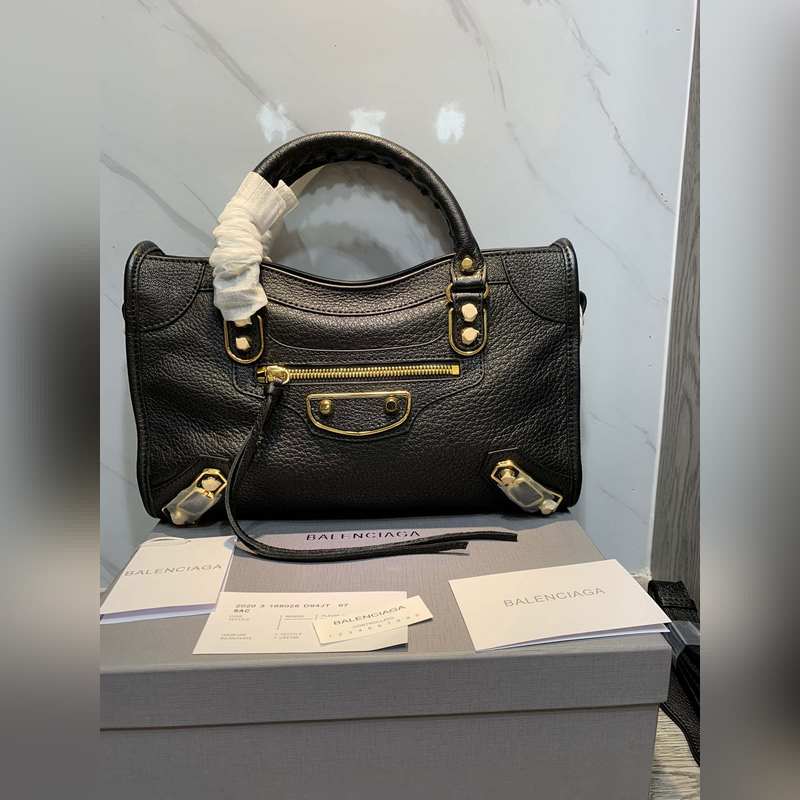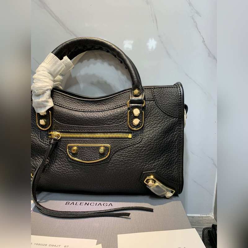 발렌시아가 염소 가죽 오토바이 가방 블랙 미디엄 30cm 크기 30.2